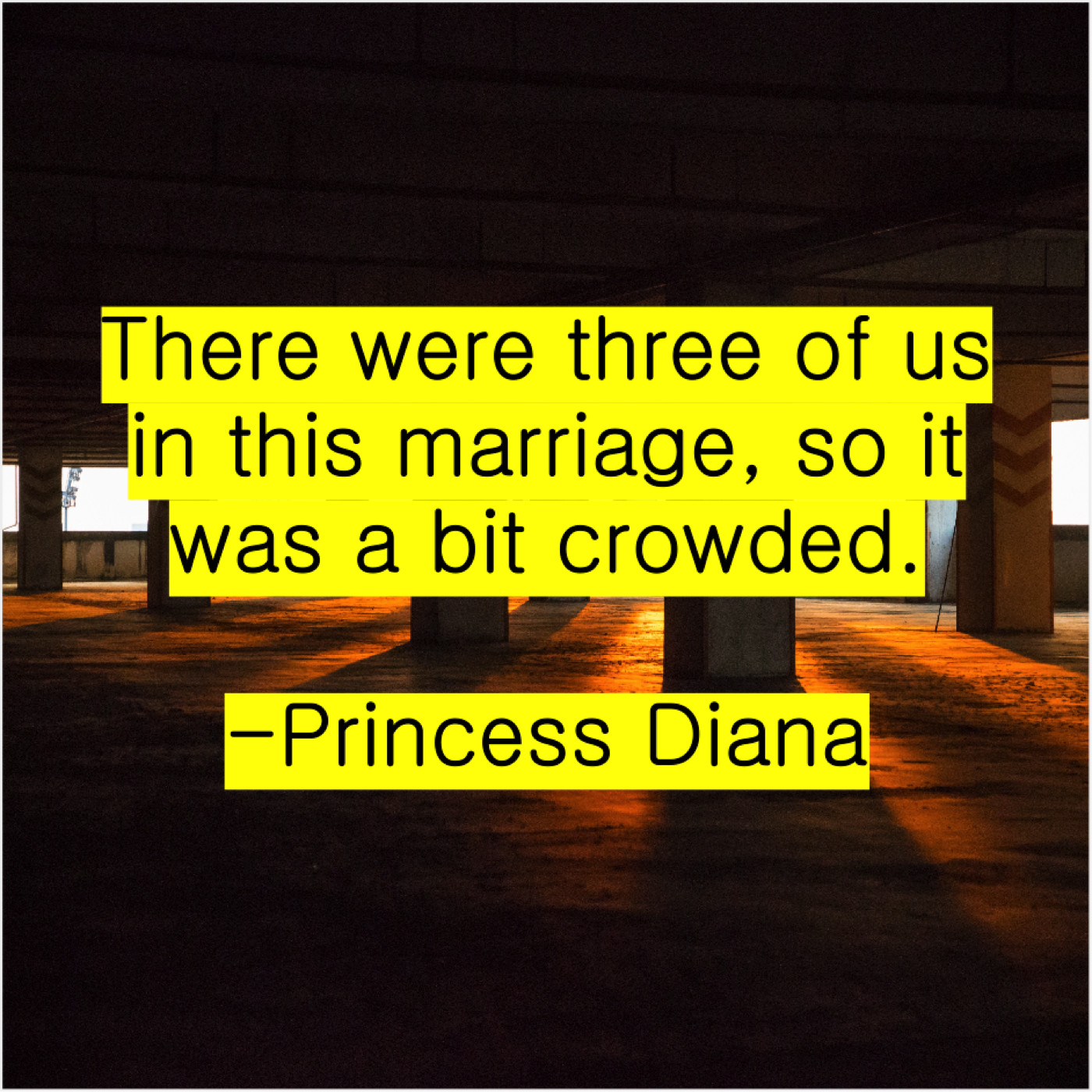 Princess Diana Princess Diana – There were three of us… May 1, 2019 admin “There were three of us in this marriage, so it was a bit crowded.”-Princess Diana
