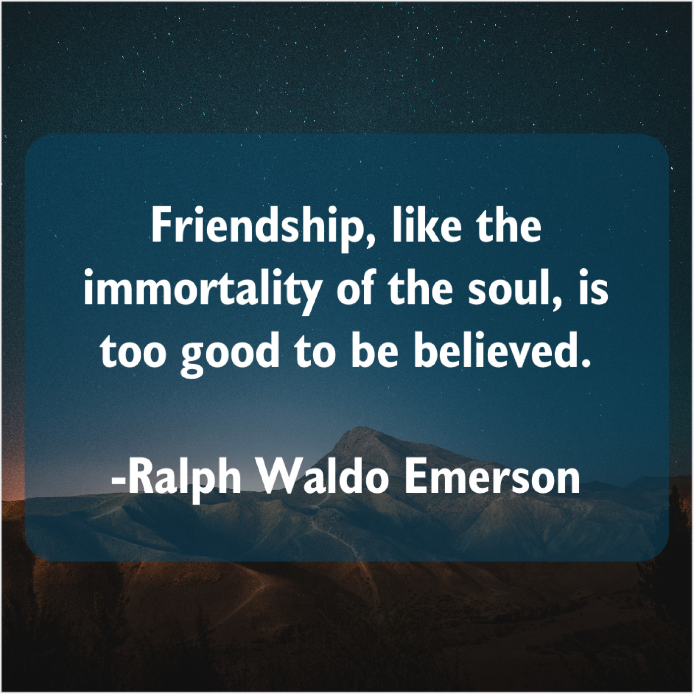 Ralph Waldo Emerson Ralph Waldo Emerson – Friendship, like the immortality of… June 30, 2019 admin “Friendship, like the immortality of the soul, is too good to be believed.”-Ralph Waldo Emerson