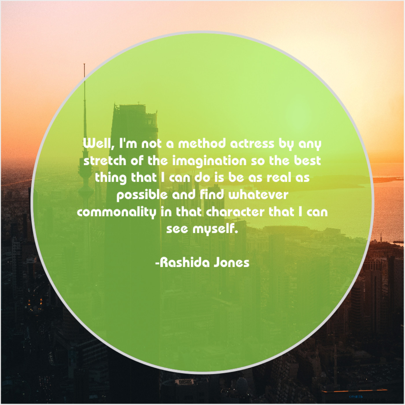 Rashida Jones Rashida Jones – Well, I’m not a method… June 3, 2019 admin “Well, I’m not a method actress by any stretch of the imagination so the best thing that I can do is be as real as possible and find whatever commonality in that character that I can see myself.”-Rashida Jones