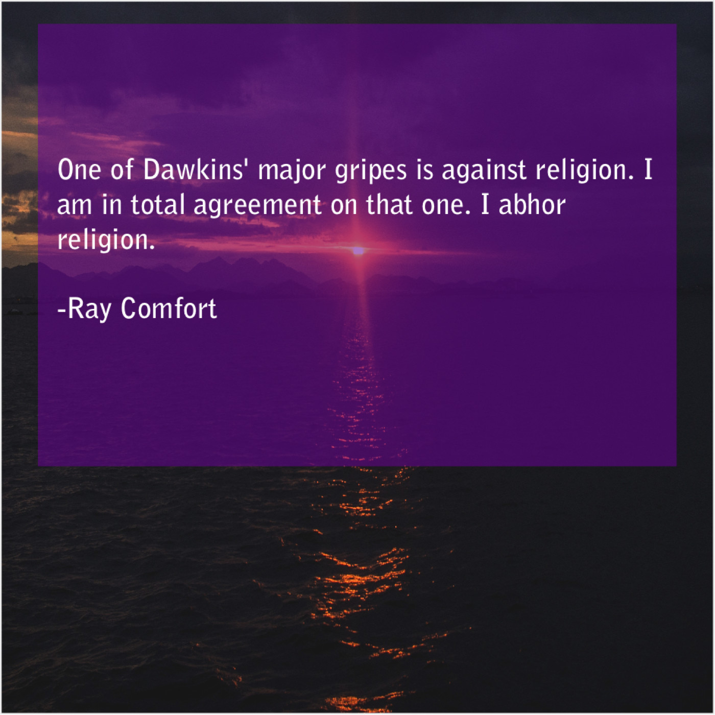 Ray Comfort Ray Comfort – One of Dawkins’ major gripes… October 12, 2019 admin “One of Dawkins’ major gripes is against religion. I am in total agreement on that one. I abhor religion.”-Ray Comfort