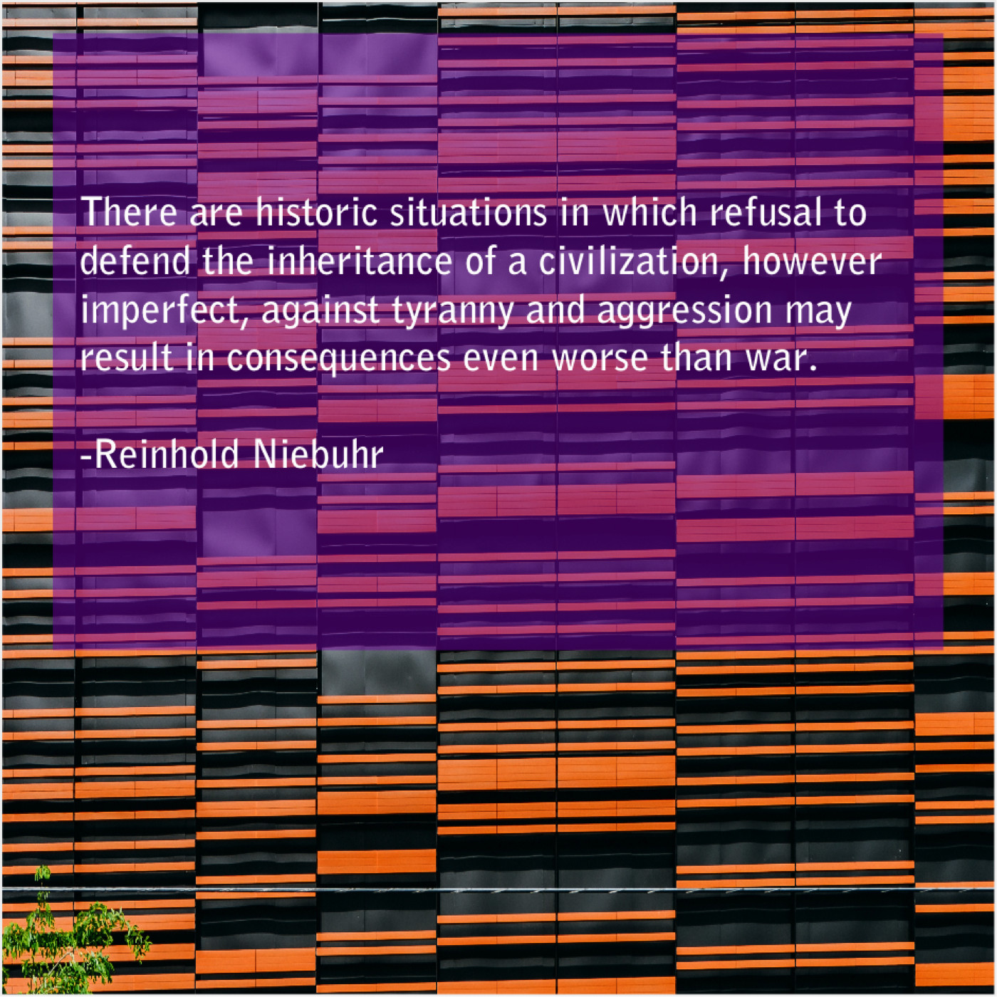 Reinhold Niebuhr Reinhold Niebuhr – There are historic situations in… February 11, 2019 admin “There are historic situations in which refusal to defend the inheritance of a civilization, however imperfect, against tyranny and aggression may result in consequences even worse than war.”-Reinhold Niebuhr