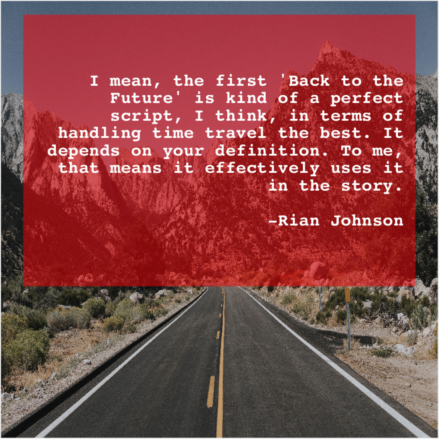 Rian Johnson Rian Johnson – I mean, the first ‘Back… December 7, 2018 admin “I mean, the first ‘Back to the Future’ is kind of a perfect script, I think, in terms of handling time travel the best. It depends on your definition. To me, that means it effectively uses it in the story.”-Rian Johnson