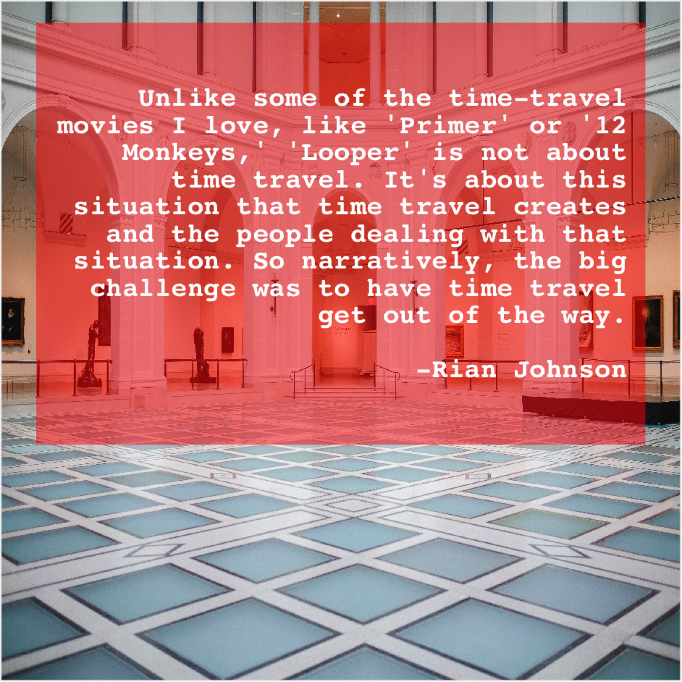 “Unlike some of the time-travel movies I love, like ‘Primer’ or ’12 Monkeys,’ ‘Looper’ is not about time travel. It’s about this situation that time travel creates and the people dealing with that situation. So narratively, the big challenge was to have time travel get out of the way.”