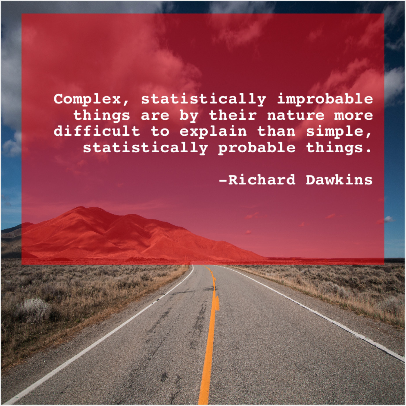 “Complex, statistically improbable things are by their nature more difficult to explain than simple, statistically probable things.”