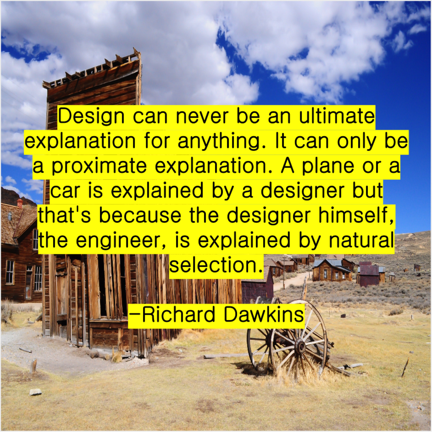 “Design can never be an ultimate explanation for anything. It can only be a proximate explanation. A plane or a car is explained by a designer but that’s because the designer himself, the engineer, is explained by natural selection.”