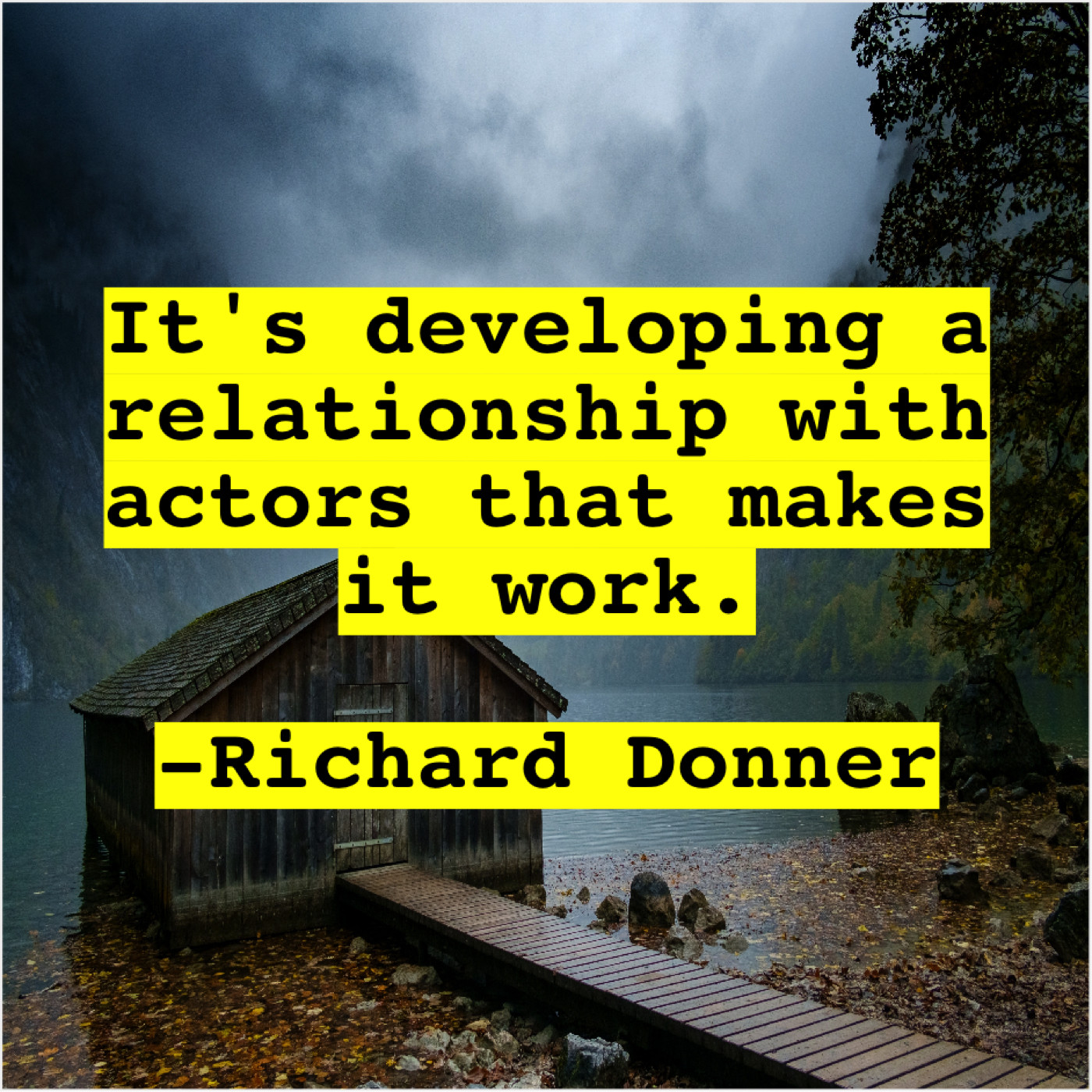 Richard Donner Richard Donner – It’s developing a relationship with… February 28, 2019 admin “It’s developing a relationship with actors that makes it work.”-Richard Donner