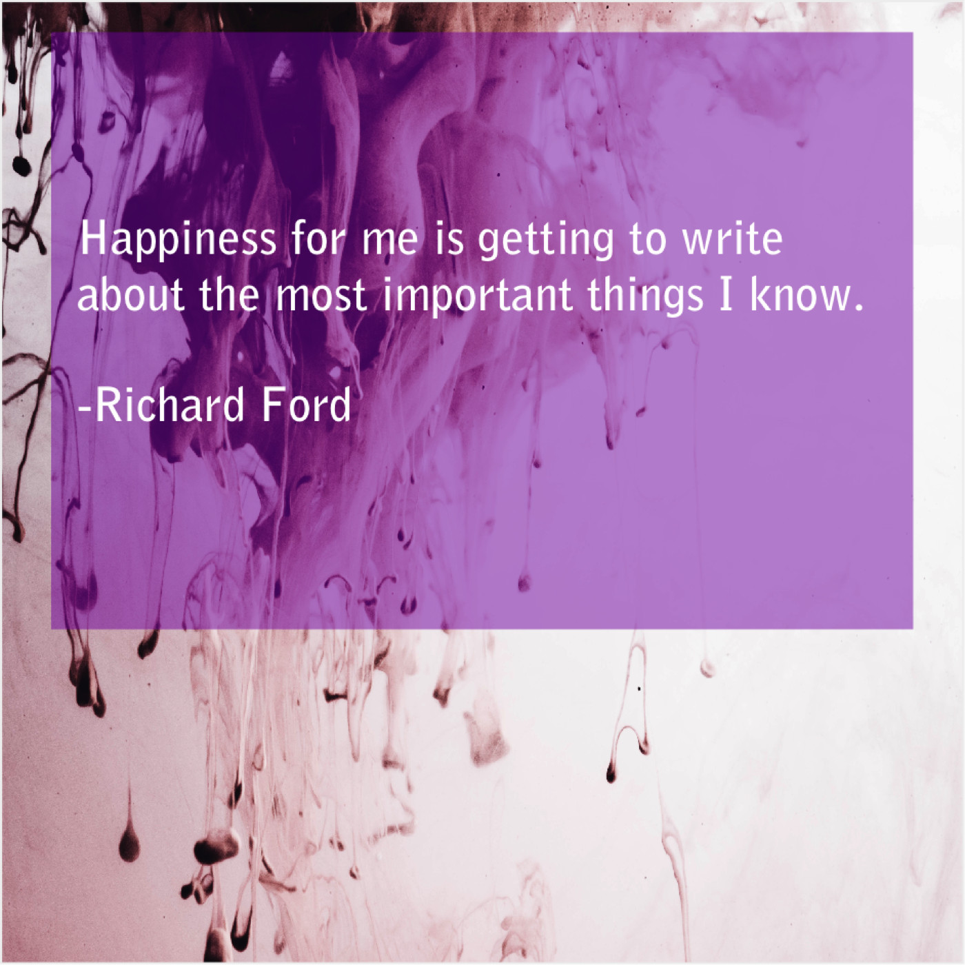 Richard Ford Richard Ford – Happiness for me is getting… February 11, 2019 admin “Happiness for me is getting to write about the most important things I know.”-Richard Ford