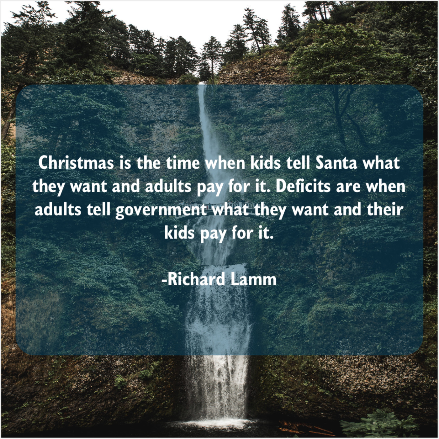 Richard Lamm Richard Lamm – Christmas is the time when… July 11, 2019 admin “Christmas is the time when kids tell Santa what they want and adults pay for it. Deficits are when adults tell government what they want and their kids pay for it.”-Richard Lamm