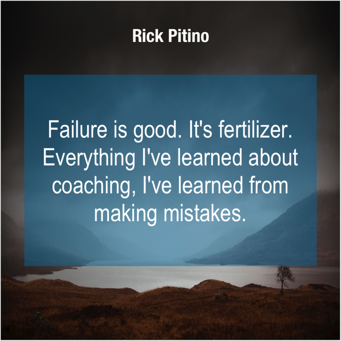 Rick Pitino Rick Pitino – Failure is good. It’s fertilizer… February 20, 2019 admin “Failure is good. It’s fertilizer. Everything I’ve learned about coaching, I’ve learned from making mistakes.”-Rick Pitino