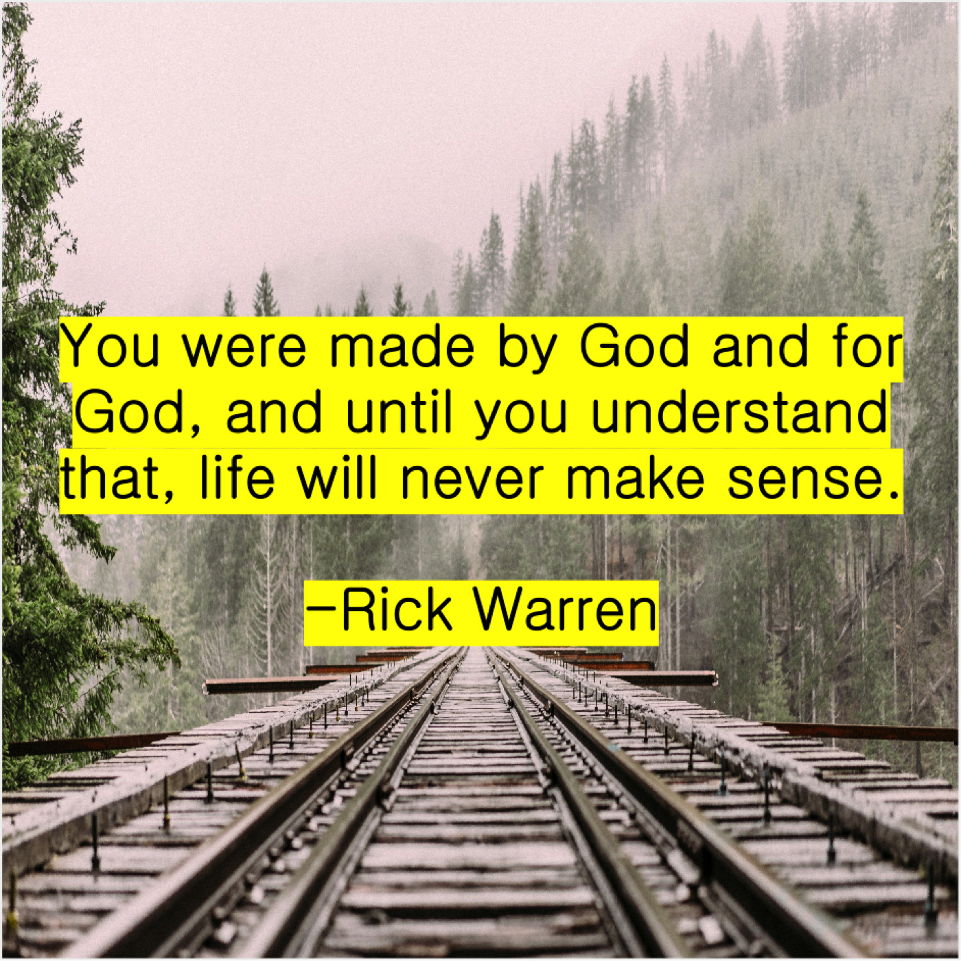 Rick Warren Rick Warren – You were made by God… October 8, 2019 admin “You were made by God and for God, and until you understand that, life will never make sense.”-Rick Warren