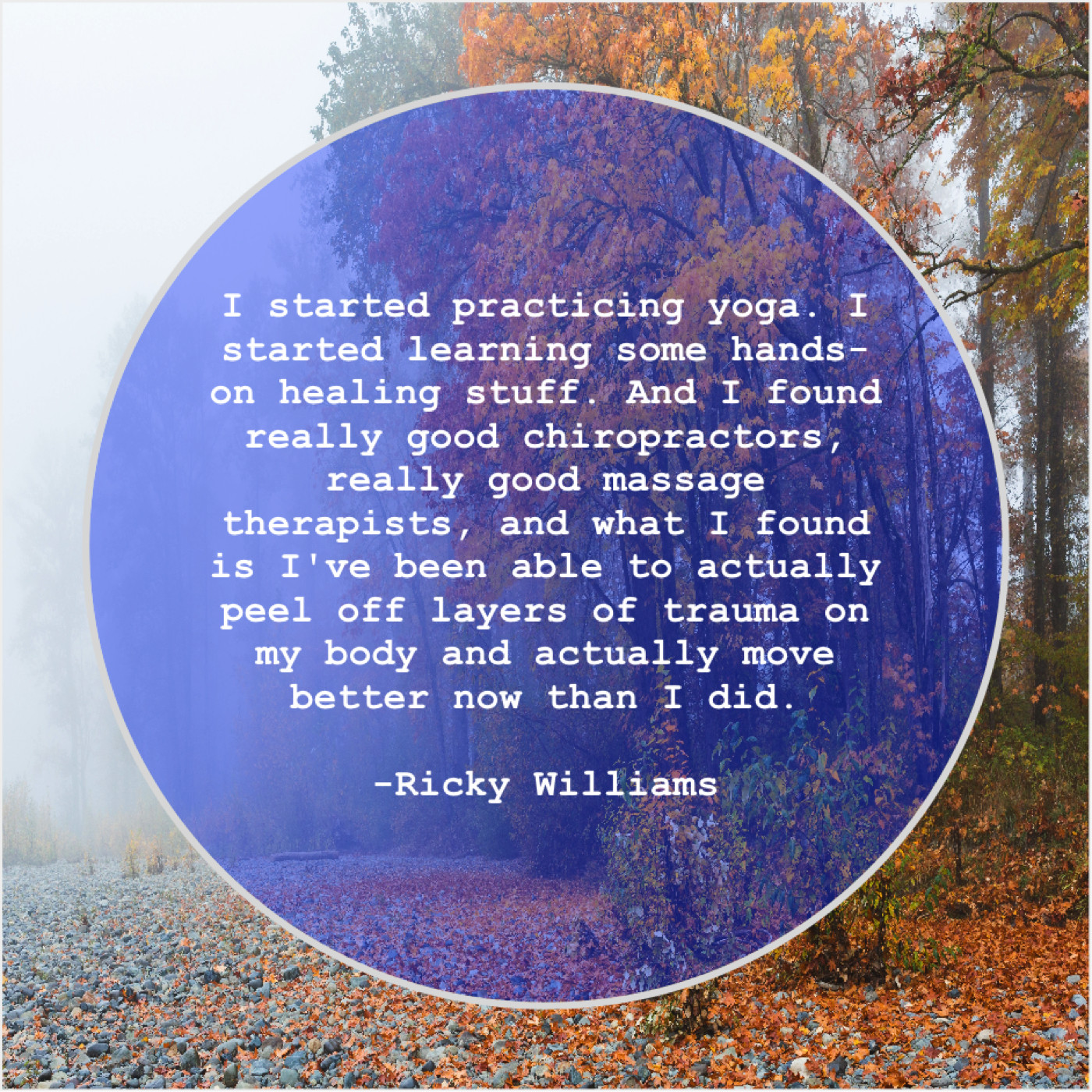 “I started practicing yoga. I started learning some hands-on healing stuff. And I found really good chiropractors, really good massage therapists, and what I found is I’ve been able to actually peel off layers of trauma on my body and actually move better now than I did.”