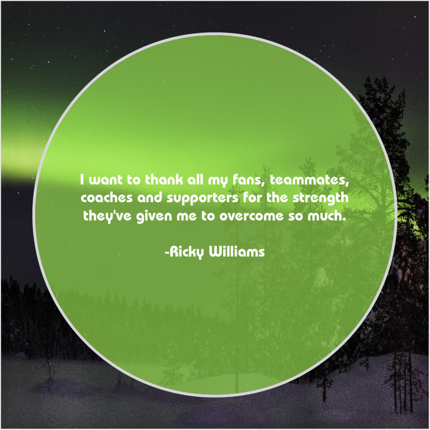 Ricky Williams Ricky Williams – I want to thank all… April 18, 2019 admin “I want to thank all my fans, teammates, coaches and supporters for the strength they’ve given me to overcome so much.”-Ricky Williams