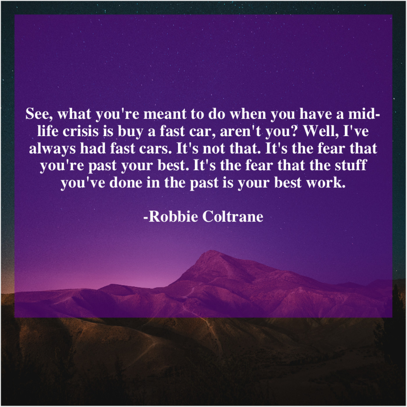 “See, what you’re meant to do when you have a mid-life crisis is buy a fast car, aren’t you? Well, I’ve always had fast cars. It’s not that. It’s the fear that you’re past your best. It’s the fear that the stuff you’ve done in the past is your best work.”