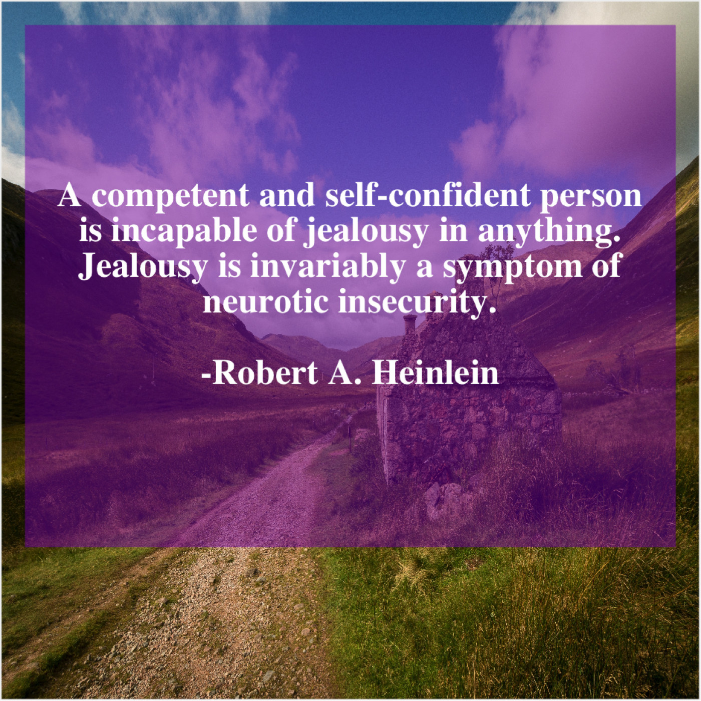 Robert A. Heinlein Robert A. Heinlein – A competent and self-confident… April 23, 2019 admin “A competent and self-confident person is incapable of jealousy in anything. Jealousy is invariably a symptom of neurotic insecurity.”-Robert A. Heinlein
