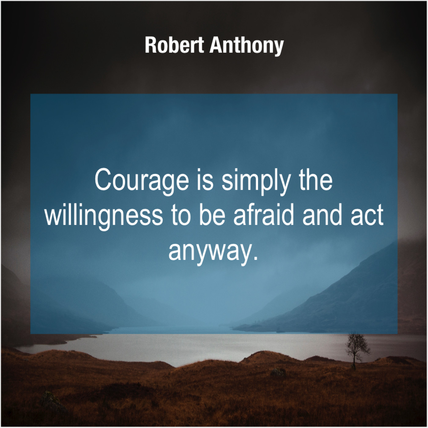 Robert Anthony Robert Anthony – Courage is simply the willingness… February 19, 2019 admin “Courage is simply the willingness to be afraid and act anyway.”-Robert Anthony