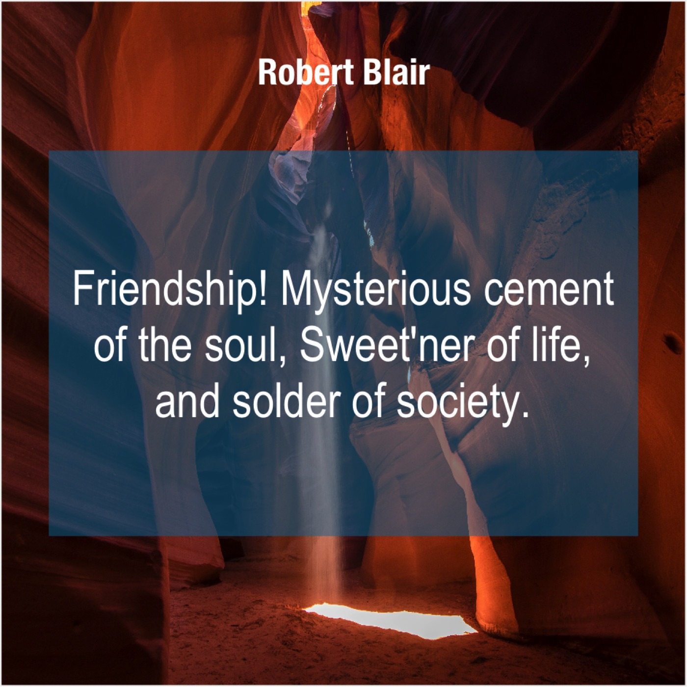 Robert Blair Robert Blair – Friendship! Mysterious cement of the… April 22, 2019 admin “Friendship! Mysterious cement of the soul, Sweet’ner of life, and solder of society.”-Robert Blair