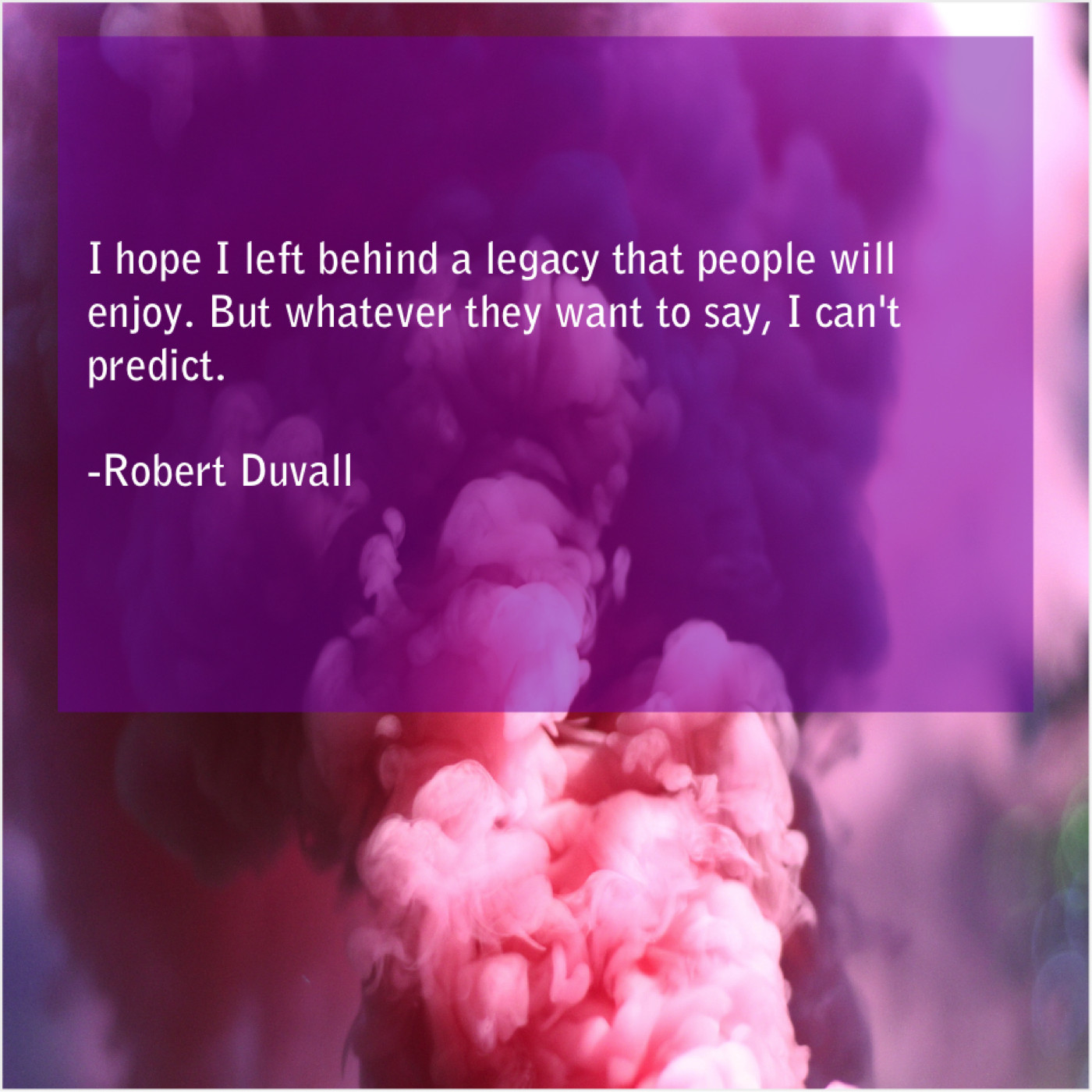 Robert Duvall Robert Duvall – I hope I left behind… February 13, 2019 admin “I hope I left behind a legacy that people will enjoy. But whatever they want to say, I can’t predict.”-Robert Duvall