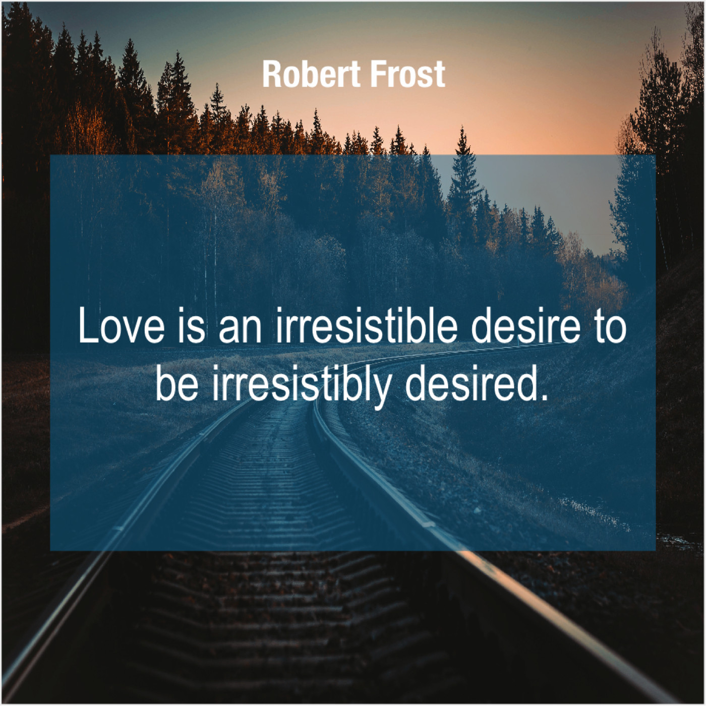 Robert Frost Robert Frost – Love is an irresistible desire… September 30, 2019 admin “Love is an irresistible desire to be irresistibly desired.”-Robert Frost