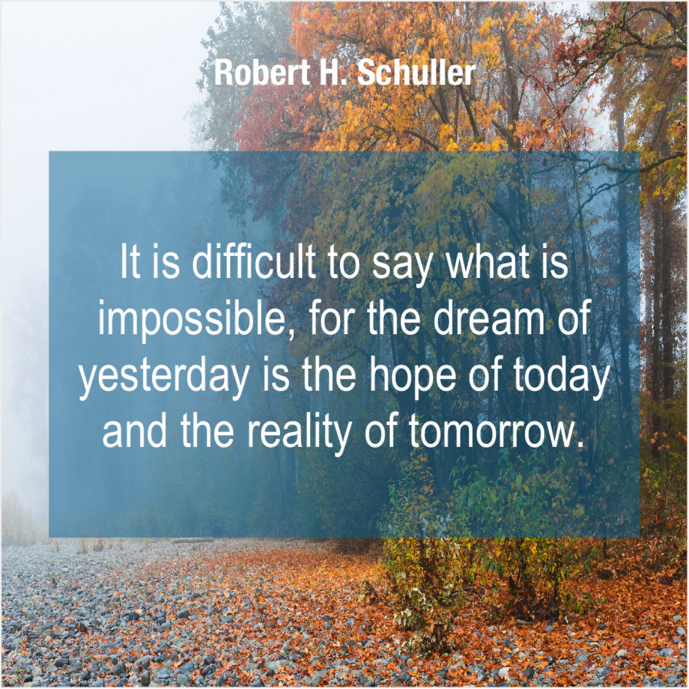 Robert H. Schuller Robert H. Schuller – It is difficult to say… December 11, 2018 admin “It is difficult to say what is impossible, for the dream of yesterday is the hope of today and the reality of tomorrow.”-Robert H. Schuller