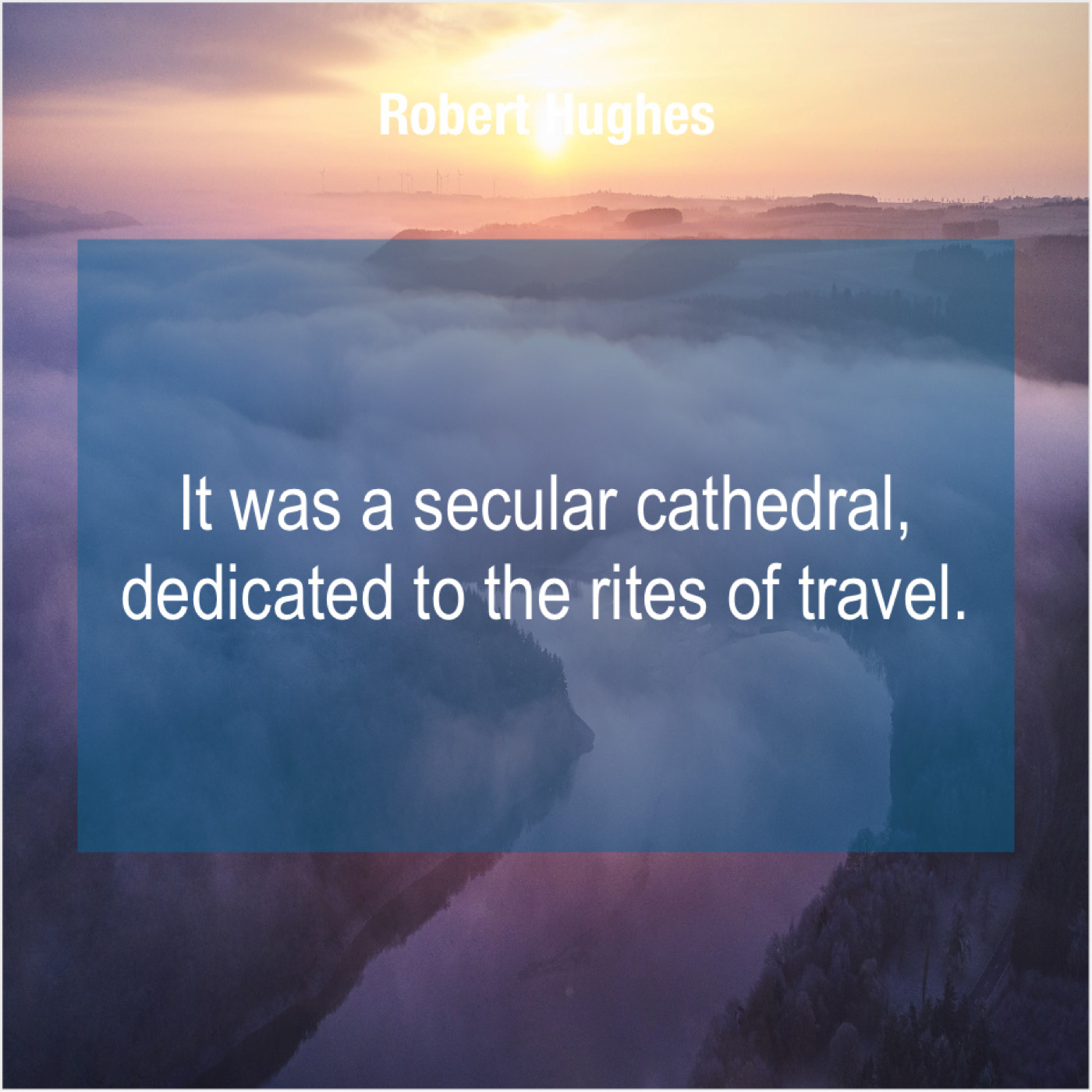 Robert Hughes Robert Hughes – It was a secular cathedral… January 15, 2019 admin “It was a secular cathedral, dedicated to the rites of travel.”-Robert Hughes