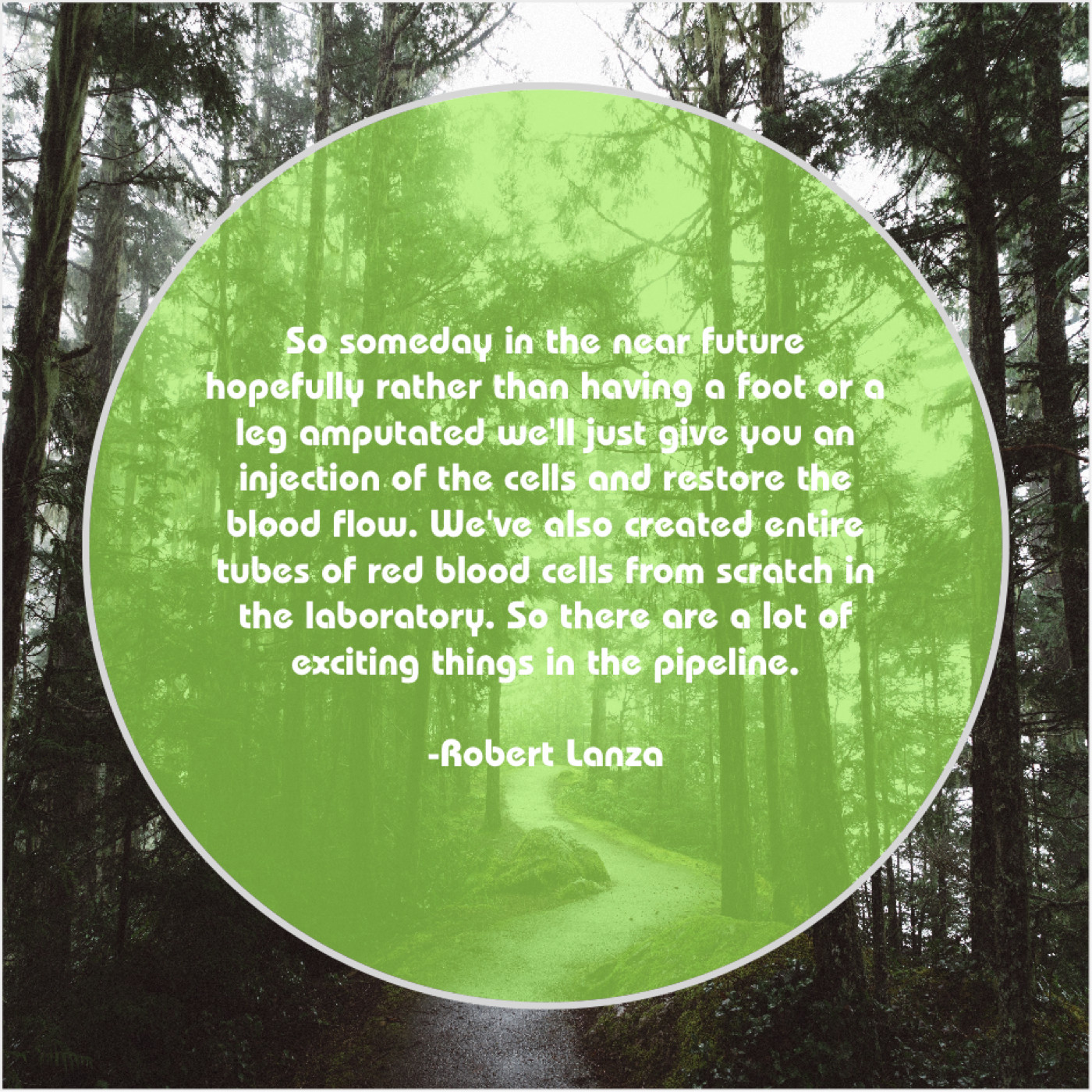 “So someday in the near future hopefully rather than having a foot or a leg amputated we’ll just give you an injection of the cells and restore the blood flow. We’ve also created entire tubes of red blood cells from scratch in the laboratory. So there are a lot of exciting things in the pipeline.”