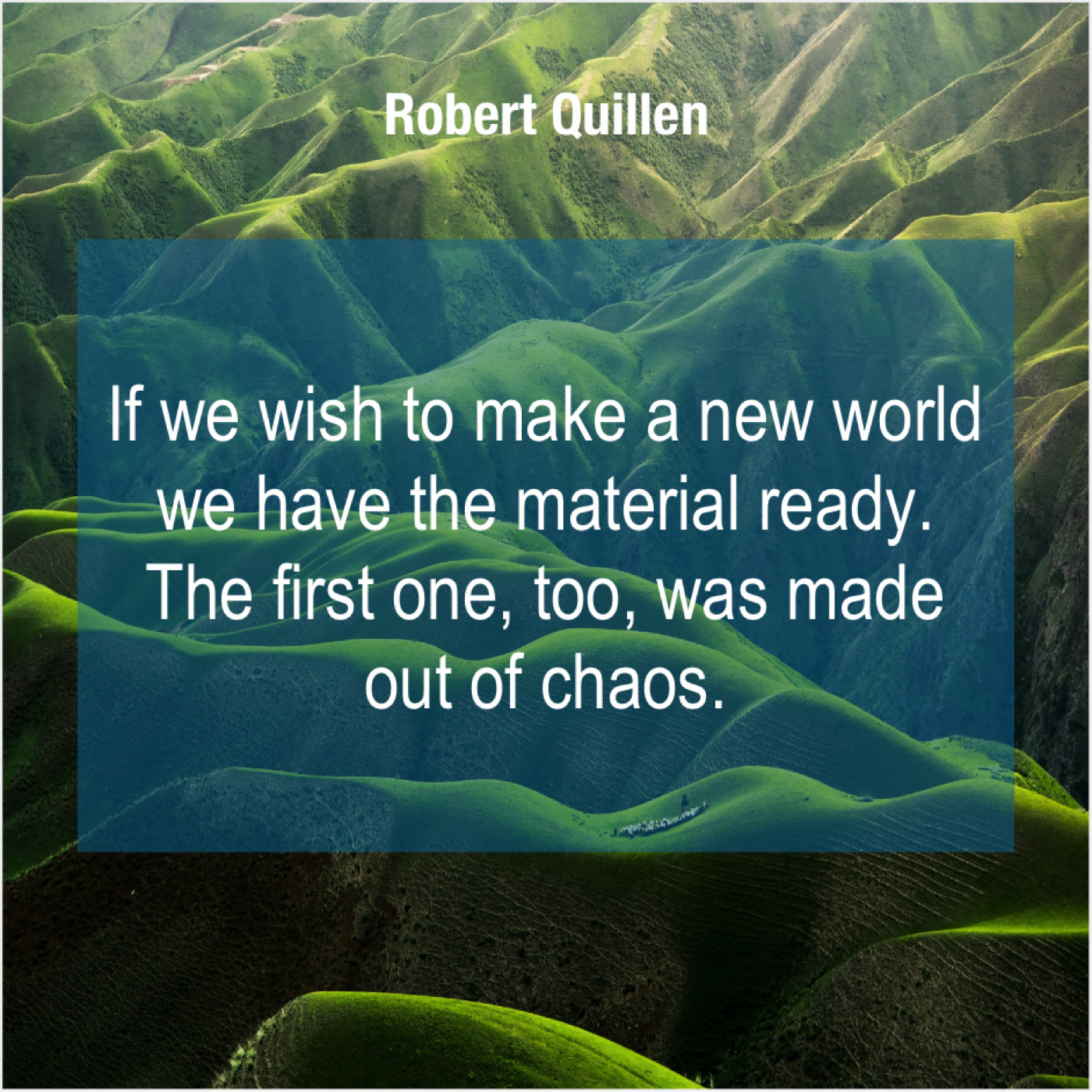 Robert Quillen Robert Quillen – If we wish to make… August 18, 2019 admin “If we wish to make a new world we have the material ready. The first one, too, was made out of chaos.”-Robert Quillen
