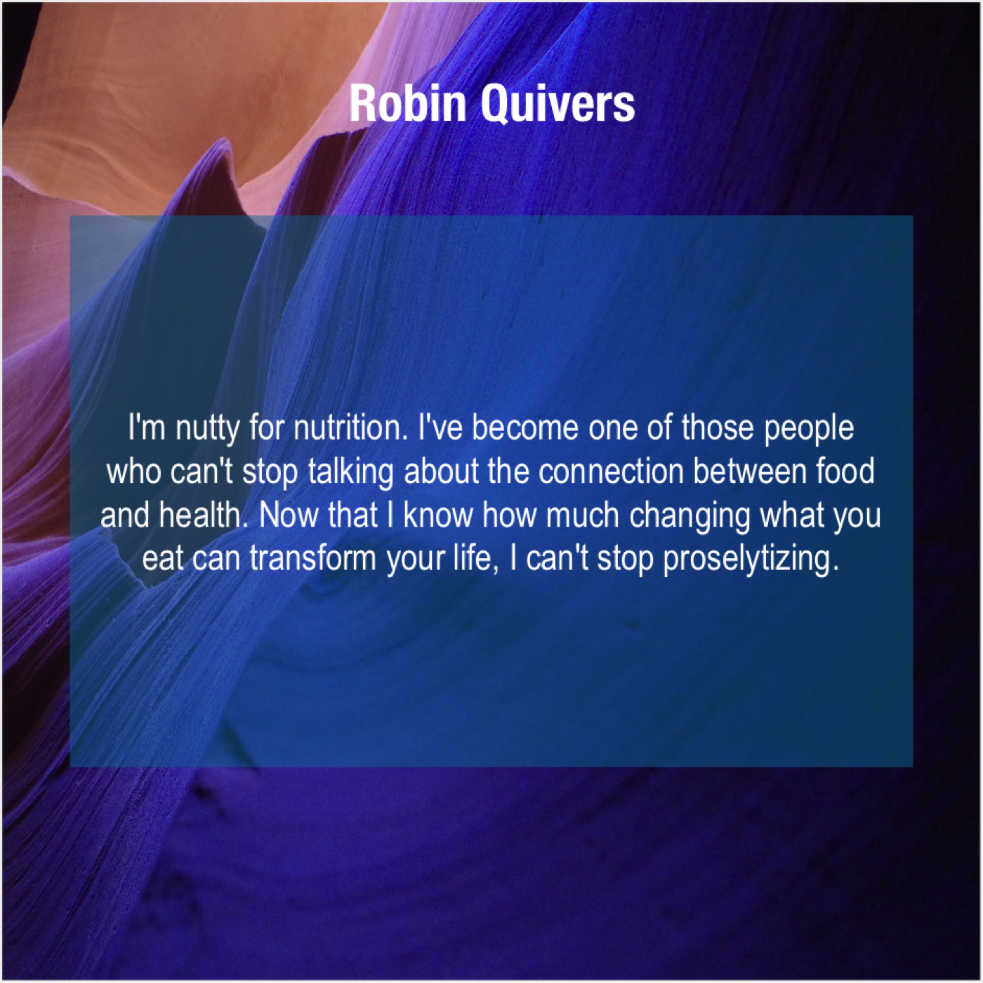 Robin Quivers Robin Quivers – I’m nutty for nutrition. I’ve… October 11, 2019 admin “I’m nutty for nutrition. I’ve become one of those people who can’t stop talking about the connection between food and health. Now that I know how much changing what you eat can transform your life, I can’t stop proselytizing.”-Robin Quivers