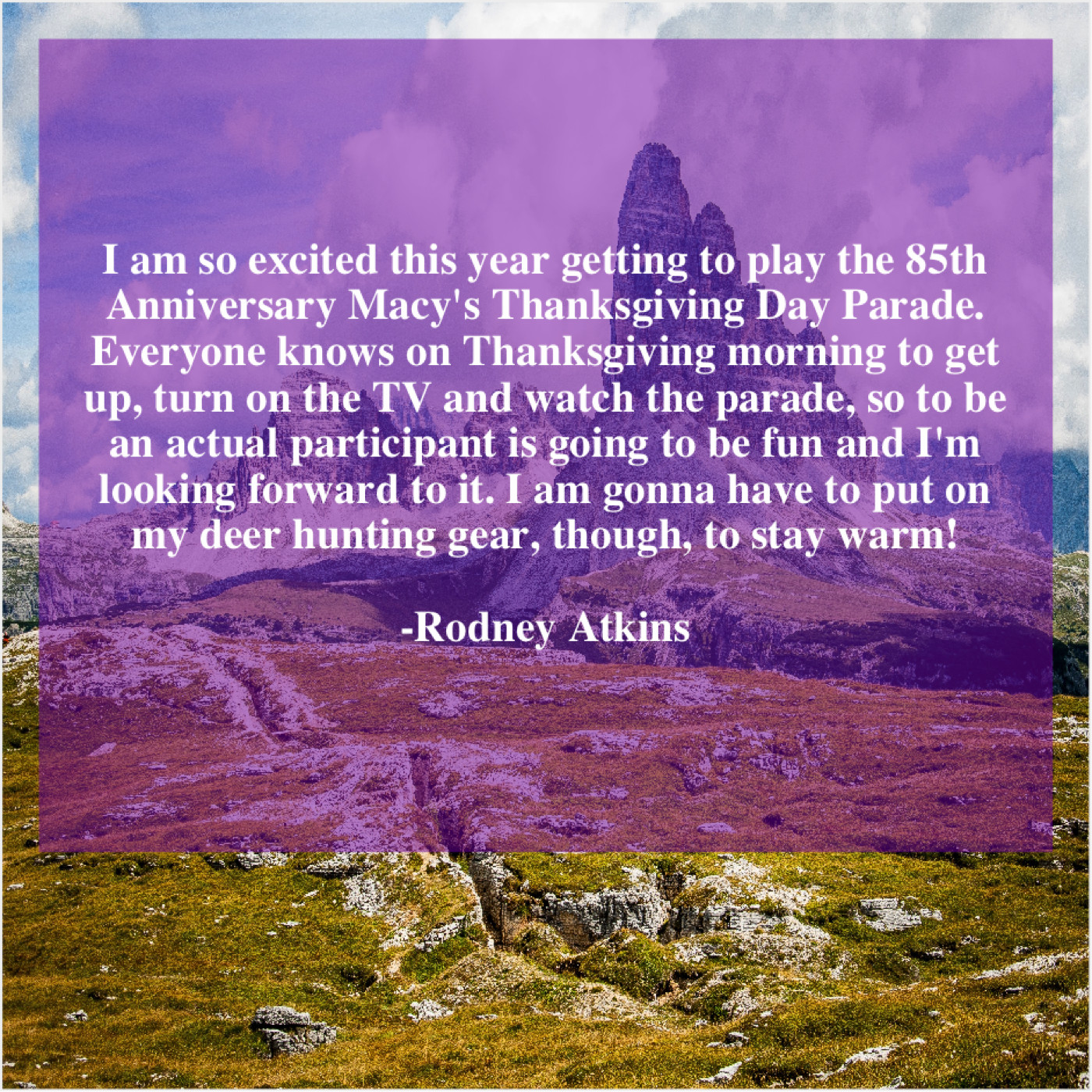 “I am so excited this year getting to play the 85th Anniversary Macy’s Thanksgiving Day Parade. Everyone knows on Thanksgiving morning to get up, turn on the TV and watch the parade, so to be an actual participant is going to be fun and I’m looking forward to it. I am gonna have to put on my deer hunting gear, though, to stay warm!”