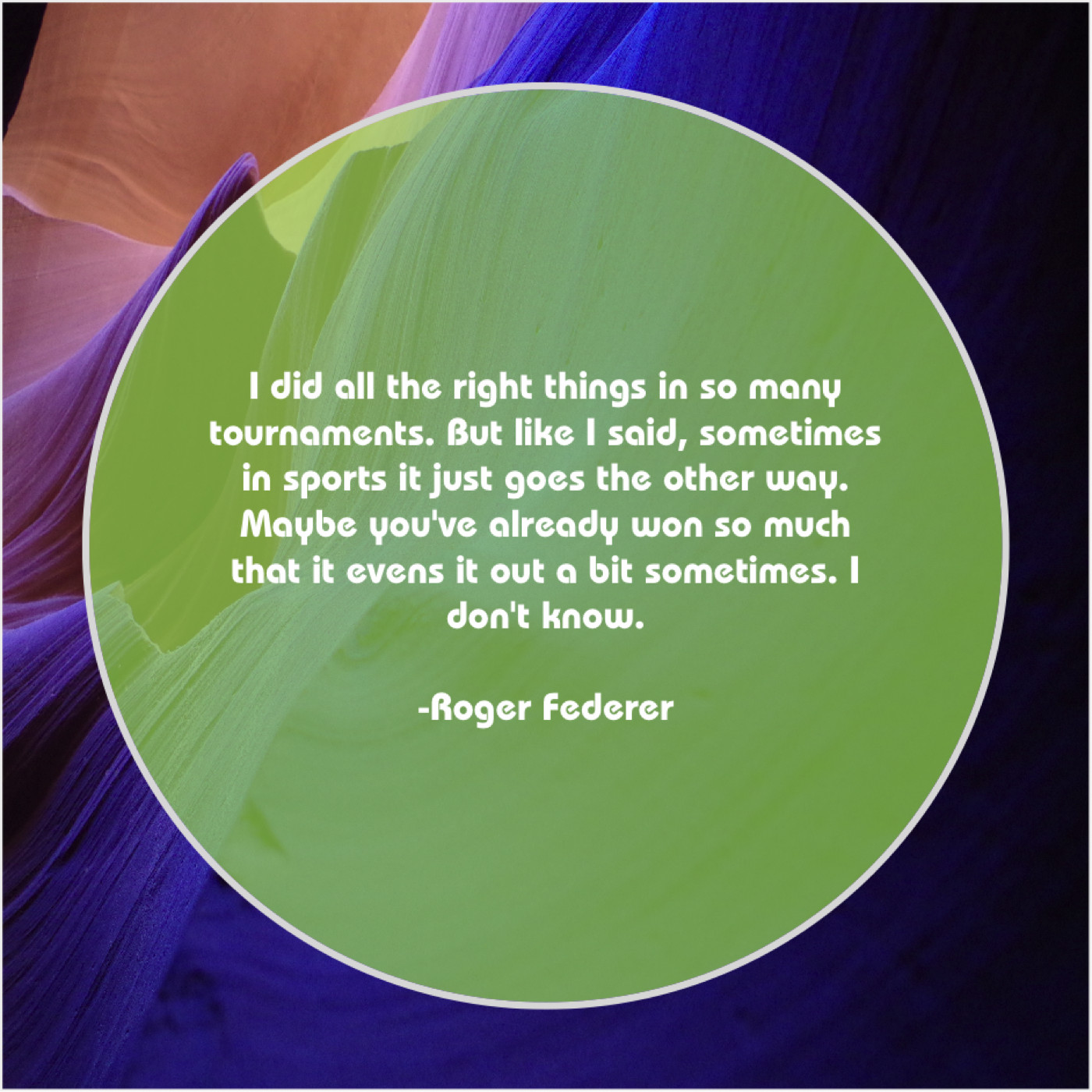 Roger Federer Roger Federer – I did all the right… April 8, 2019 admin “I did all the right things in so many tournaments. But like I said, sometimes in sports it just goes the other way. Maybe you’ve already won so much that it evens it out a bit sometimes. I don’t know.”-Roger Federer