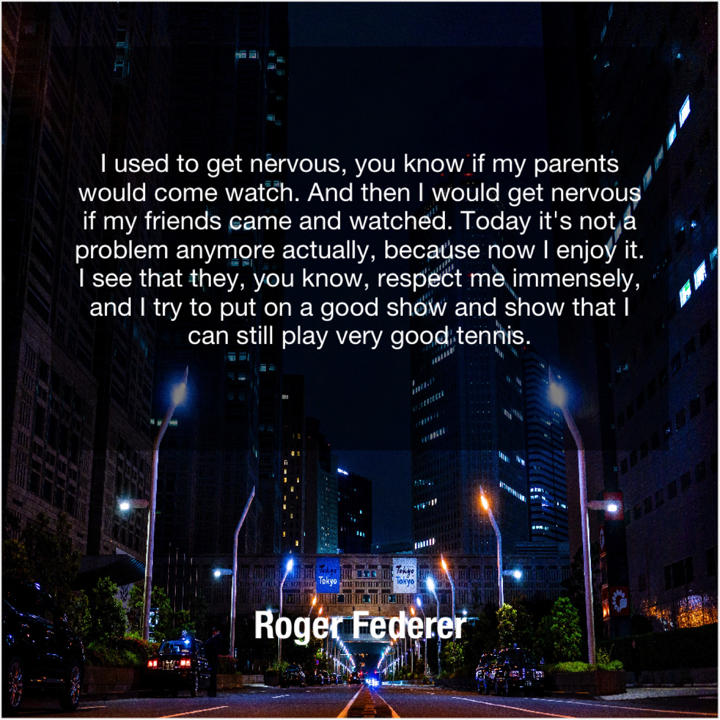 “I used to get nervous, you know if my parents would come watch. And then I would get nervous if my friends came and watched. Today it’s not a problem anymore actually, because now I enjoy it. I see that they, you know, respect me immensely, and I try to put on a good show and show that I can still play very good tennis.”