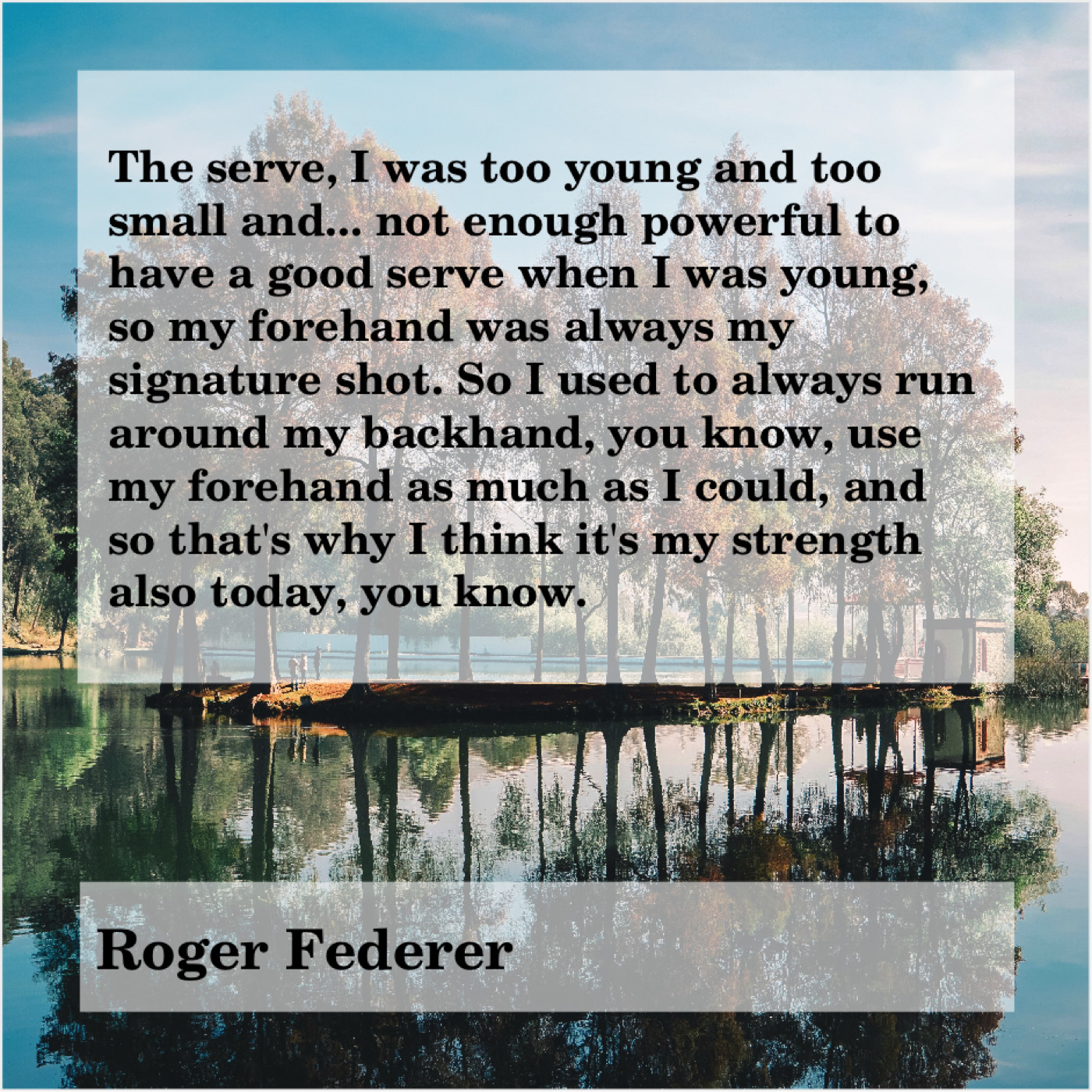 “The serve, I was too young and too small and… not enough powerful to have a good serve when I was young, so my forehand was always my signature shot. So I used to always run around my backhand, you know, use my forehand as much as I could, and so that’s why I think it’s my strength also today, you know.”