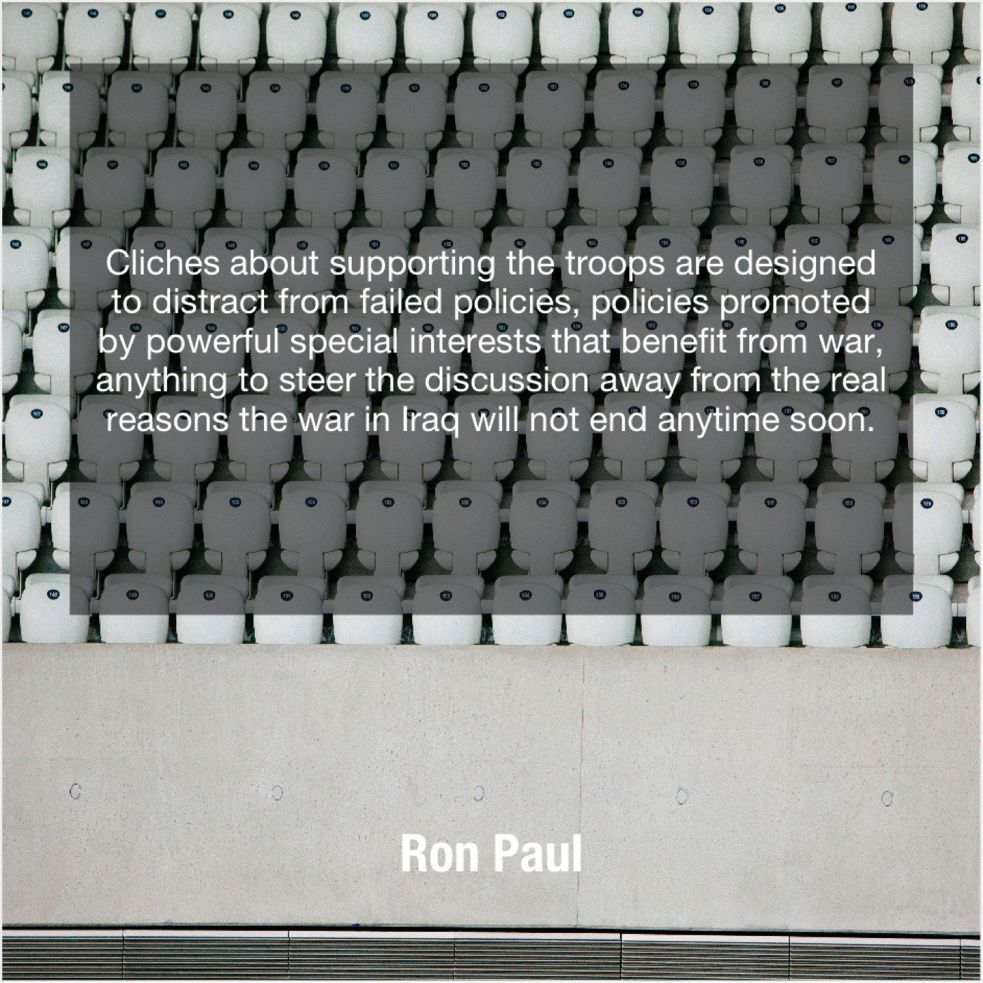 “Cliches about supporting the troops are designed to distract from failed policies, policies promoted by powerful special interests that benefit from war, anything to steer the discussion away from the real reasons the war in Iraq will not end anytime soon.”