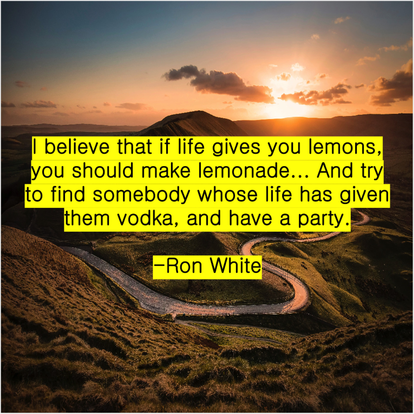 Ron White Ron White – I believe that if life… November 15, 2018 admin “I believe that if life gives you lemons, you should make lemonade… And try to find somebody whose life has given them vodka, and have a party.”-Ron White