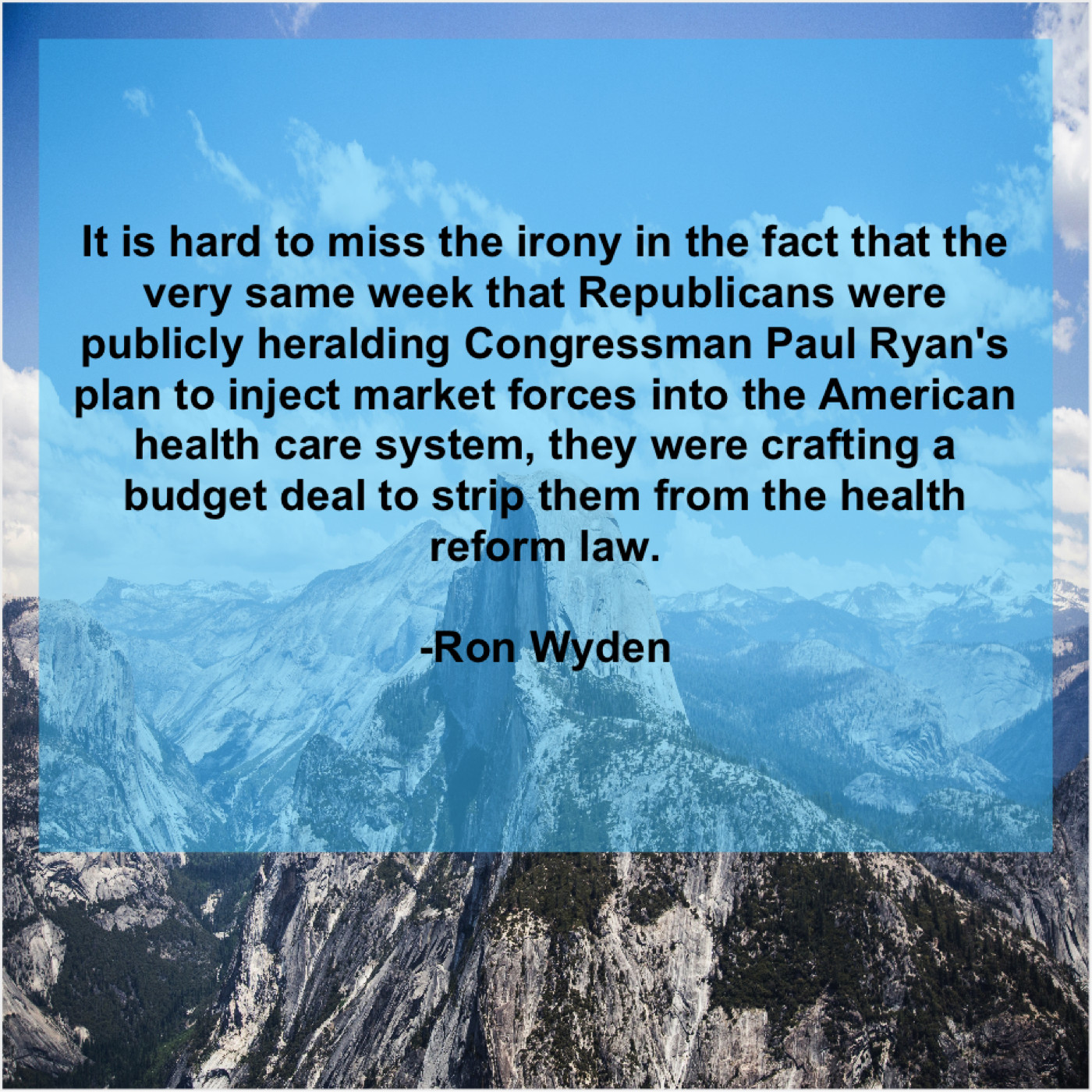 “It is hard to miss the irony in the fact that the very same week that Republicans were publicly heralding Congressman Paul Ryan’s plan to inject market forces into the American health care system, they were crafting a budget deal to strip them from the health reform law.”