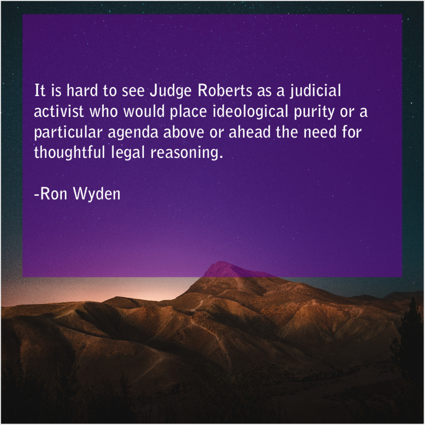 Ron Wyden Ron Wyden – It is hard to see… July 4, 2019 admin “It is hard to see Judge Roberts as a judicial activist who would place ideological purity or a particular agenda above or ahead the need for thoughtful legal reasoning.”-Ron Wyden