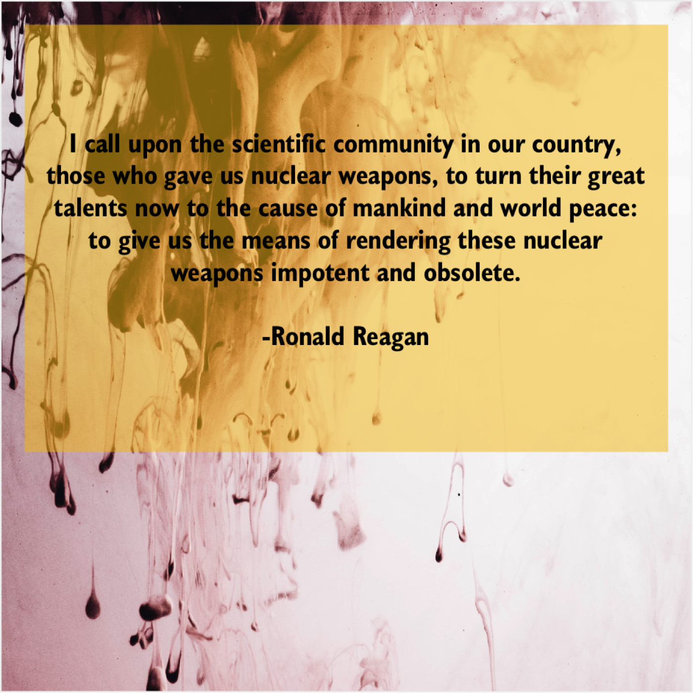“I call upon the scientific community in our country, those who gave us nuclear weapons, to turn their great talents now to the cause of mankind and world peace: to give us the means of rendering these nuclear weapons impotent and obsolete.”