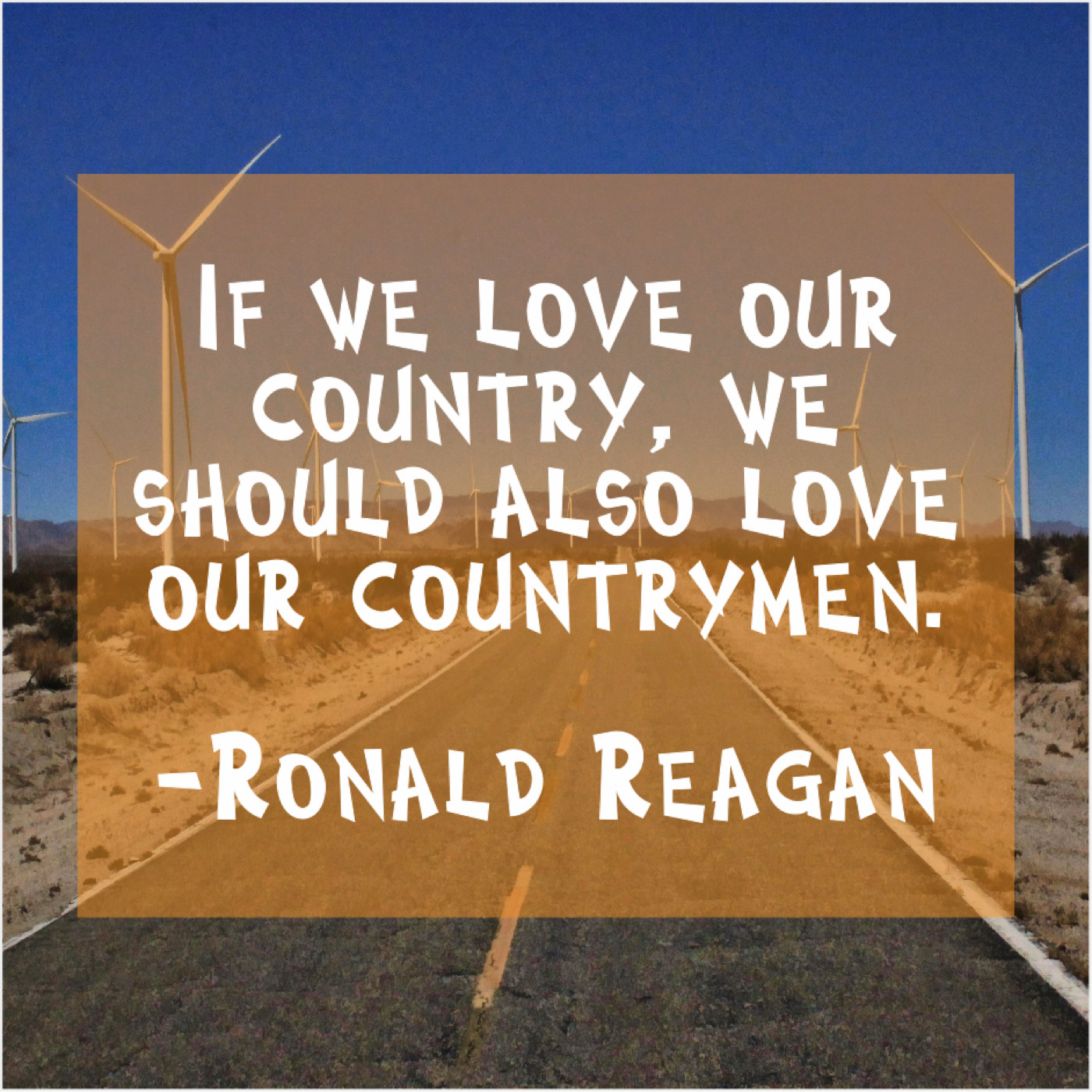 Ronald Reagan Ronald Reagan – If we love our country… December 22, 2018 admin “If we love our country, we should also love our countrymen.”-Ronald Reagan
