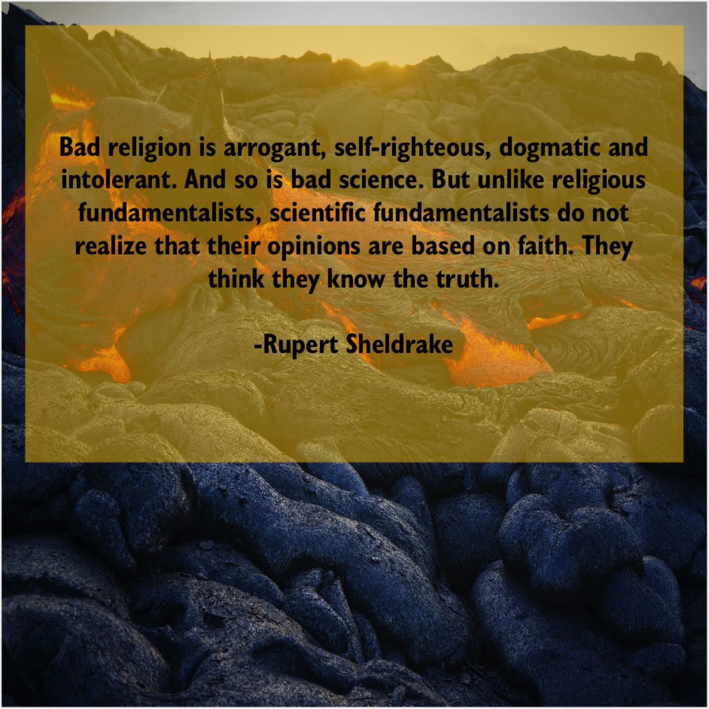 “Bad religion is arrogant, self-righteous, dogmatic and intolerant. And so is bad science. But unlike religious fundamentalists, scientific fundamentalists do not realize that their opinions are based on faith. They think they know the truth.”