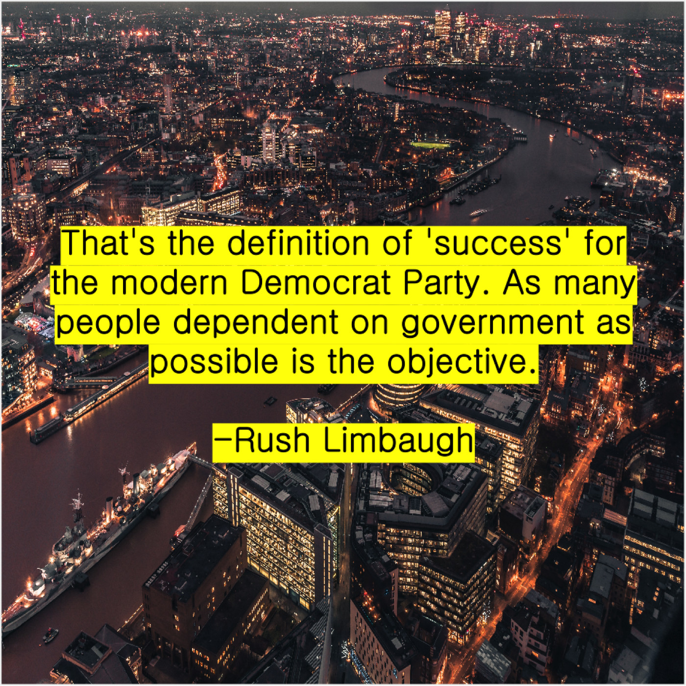 Rush Limbaugh Rush Limbaugh – That’s the definition of ‘success… July 30, 2019 admin “That’s the definition of ‘success’ for the modern Democrat Party. As many people dependent on government as possible is the objective.”-Rush Limbaugh