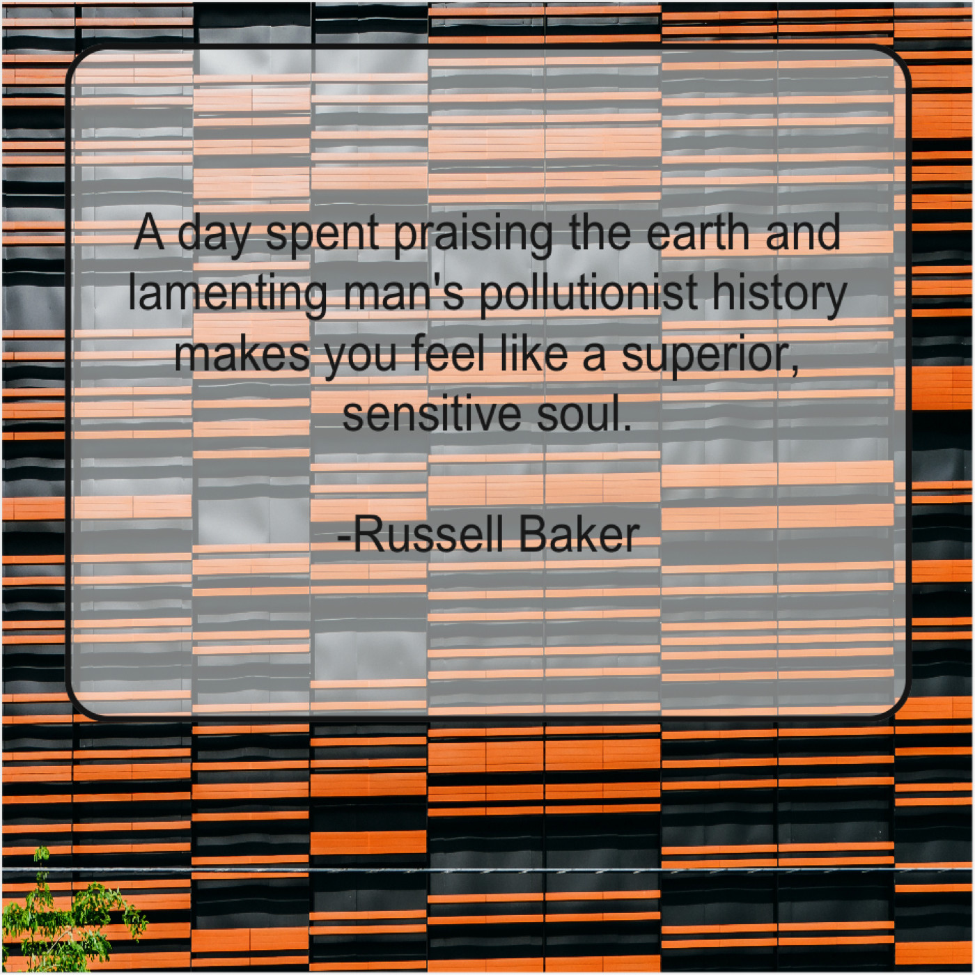 Russell Baker Russell Baker – A day spent praising the… November 1, 2018 admin “A day spent praising the earth and lamenting man’s pollutionist history makes you feel like a superior, sensitive soul.”-Russell Baker