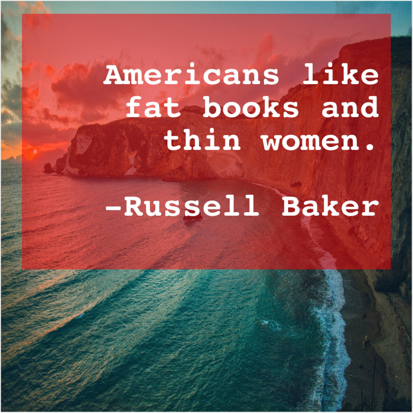 Russell Baker Russell Baker – Americans like fat books and… November 25, 2018 admin “Americans like fat books and thin women.”-Russell Baker