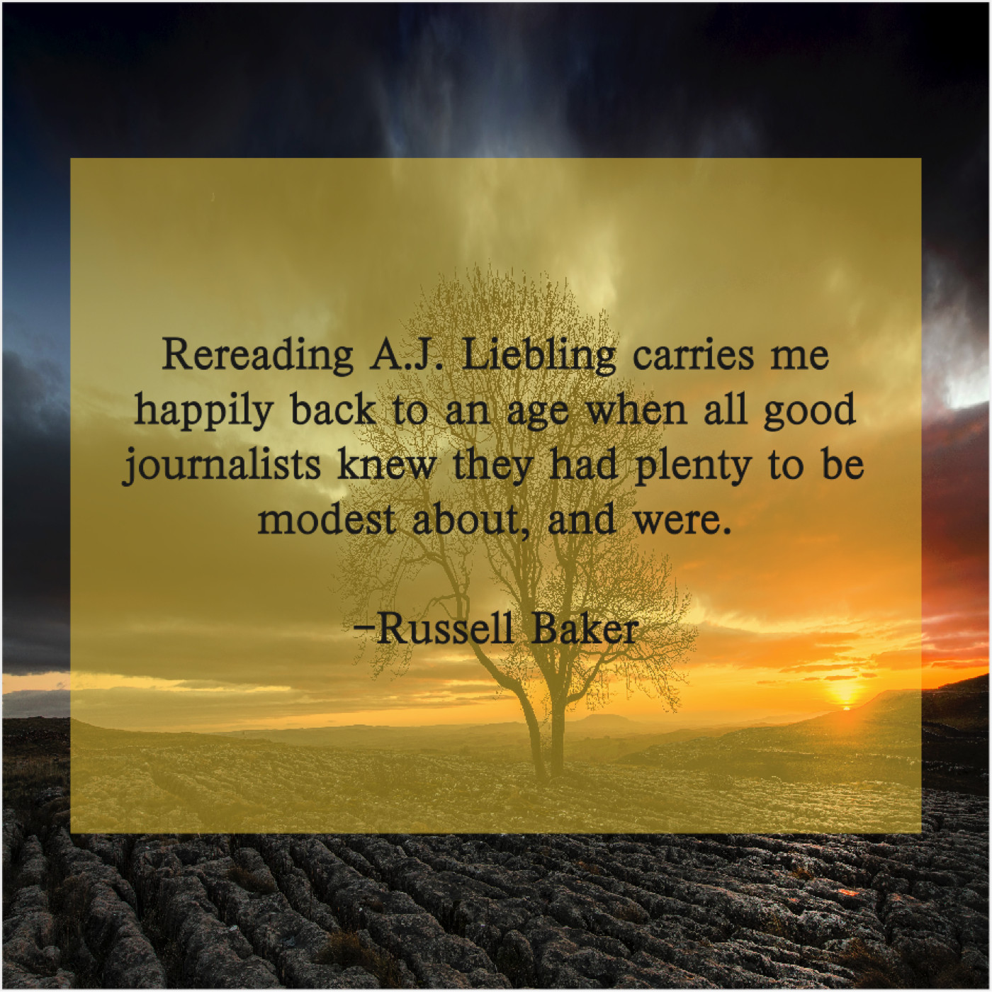 Russell Baker Russell Baker – Rereading A.J. Liebling carries me… January 16, 2019 admin “Rereading A.J. Liebling carries me happily back to an age when all good journalists knew they had plenty to be modest about, and were.”-Russell Baker