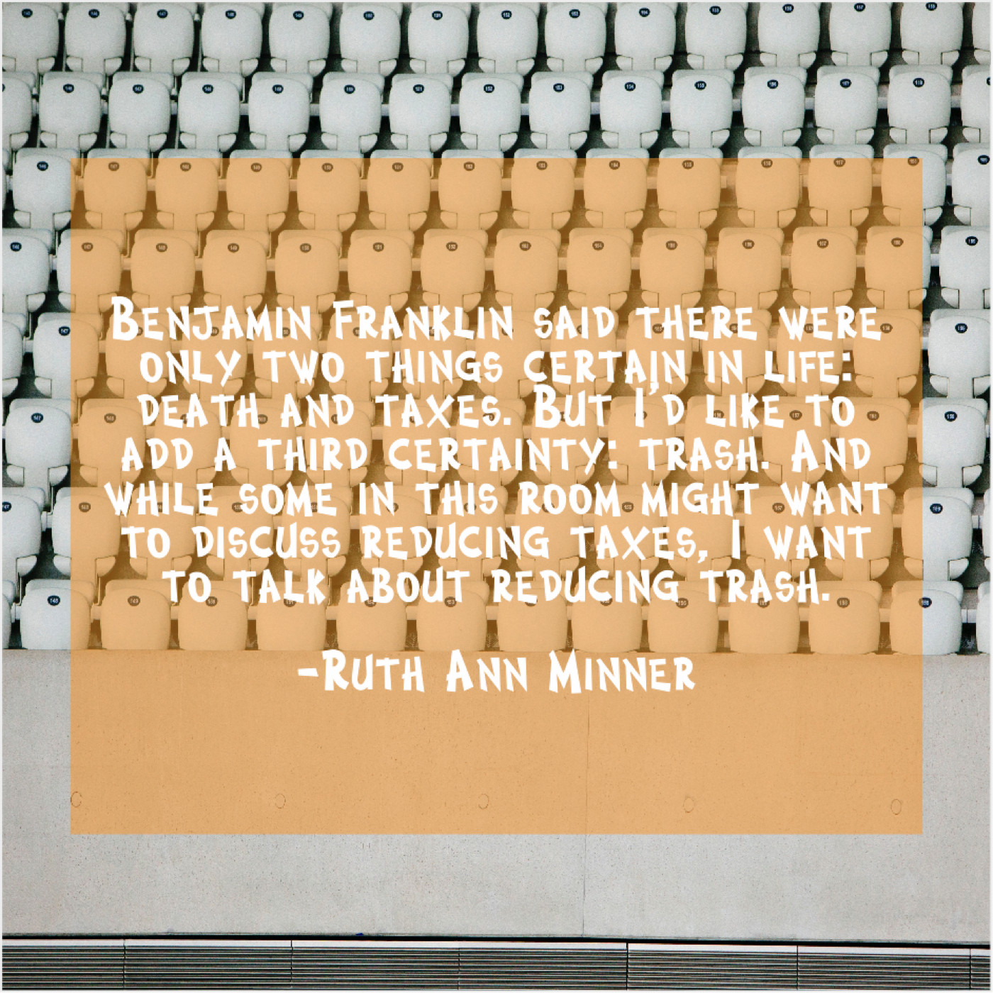 “Benjamin Franklin said there were only two things certain in life: death and taxes. But I’d like to add a third certainty: trash. And while some in this room might want to discuss reducing taxes, I want to talk about reducing trash.”