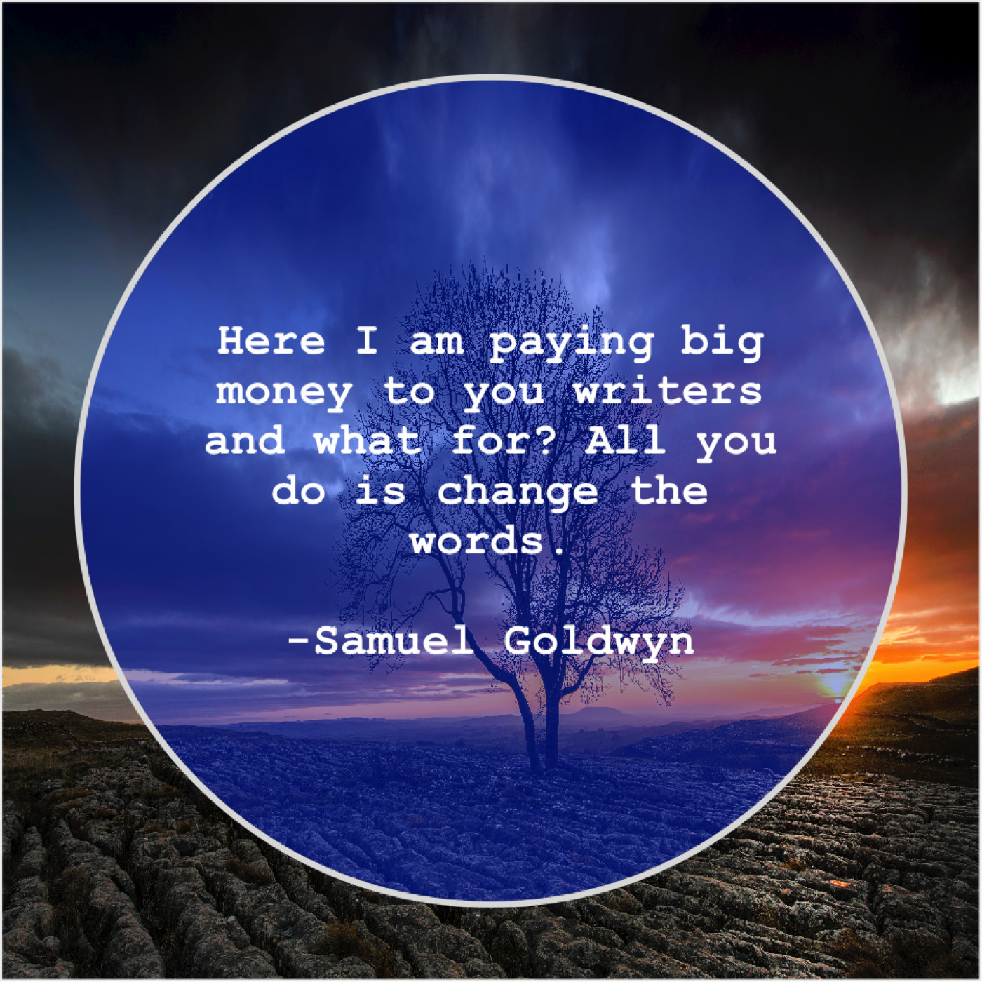 Samuel Goldwyn Samuel Goldwyn – Here I am paying big… September 4, 2019 admin “Here I am paying big money to you writers and what for? All you do is change the words.”-Samuel Goldwyn