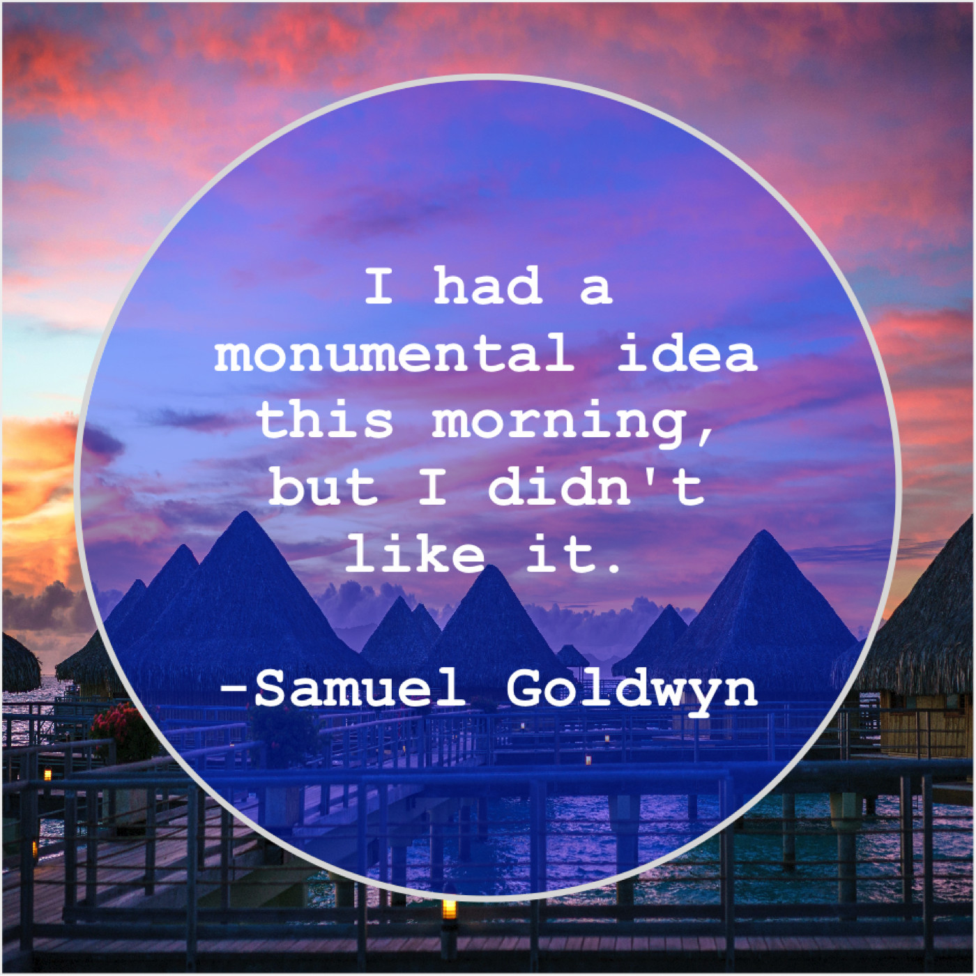 Samuel Goldwyn Samuel Goldwyn – I had a monumental idea… October 12, 2019 admin “I had a monumental idea this morning, but I didn’t like it.”-Samuel Goldwyn