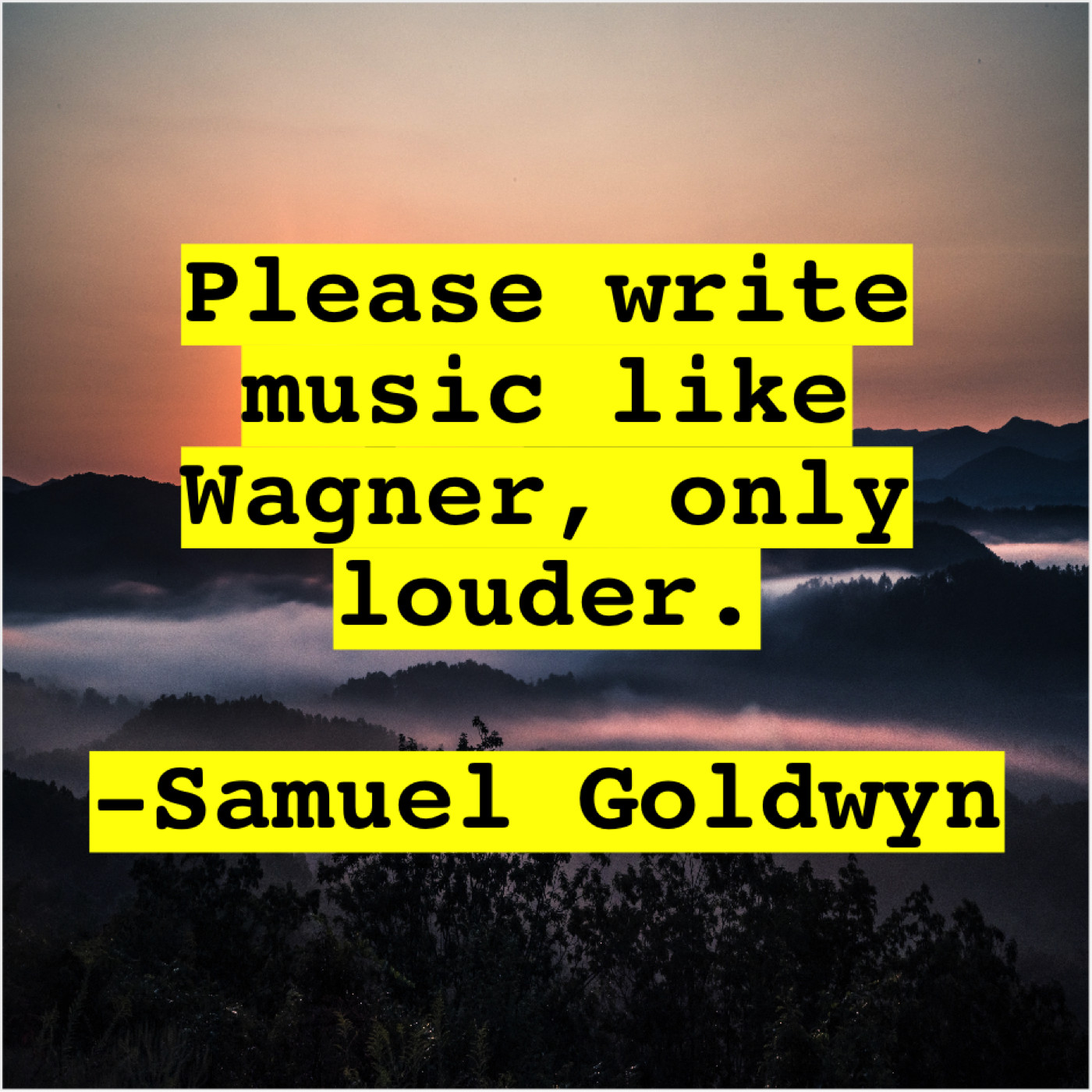 Samuel Goldwyn Samuel Goldwyn – Please write music like Wagner… April 25, 2019 admin “Please write music like Wagner, only louder.”-Samuel Goldwyn