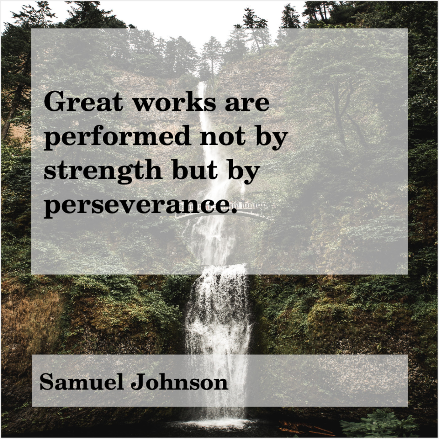 Samuel Johnson Samuel Johnson – Great works are performed not… October 7, 2019 admin “Great works are performed not by strength but by perseverance.”-Samuel Johnson