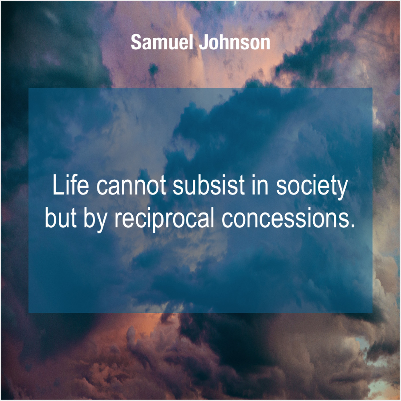 Samuel Johnson Samuel Johnson – Life cannot subsist in society… August 17, 2019 admin “Life cannot subsist in society but by reciprocal concessions.”-Samuel Johnson