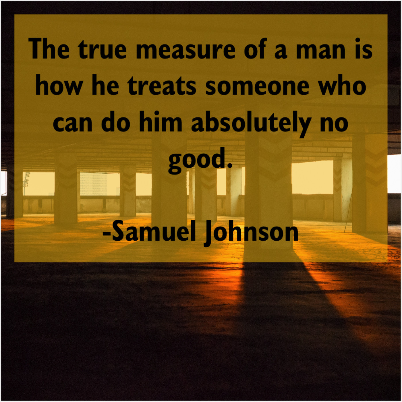 Samuel Johnson Samuel Johnson – The true measure of a… May 8, 2019 admin “The true measure of a man is how he treats someone who can do him absolutely no good.”-Samuel Johnson