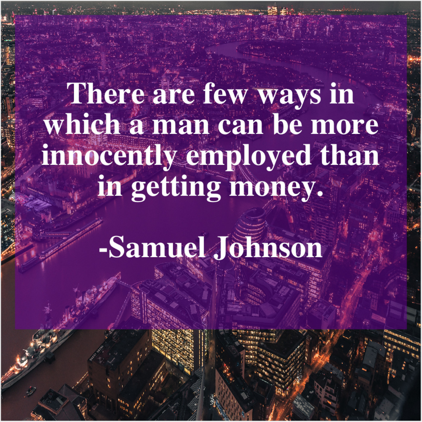 Samuel Johnson Samuel Johnson – There are few ways in… September 28, 2019 admin “There are few ways in which a man can be more innocently employed than in getting money.”-Samuel Johnson